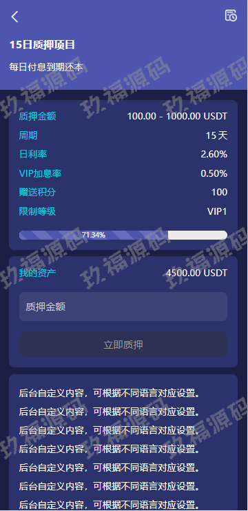 高端多语言自动挖矿系统 玖福质押理财 自定义语言