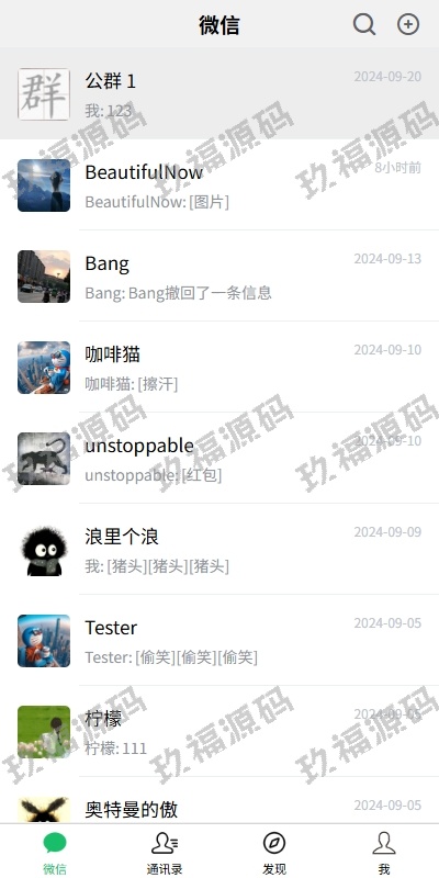 系统前端uniapp开发,后端JAVA开发带源码支持高并 前端高仿微信聊天,支持单聊和群聊,后台功能简介