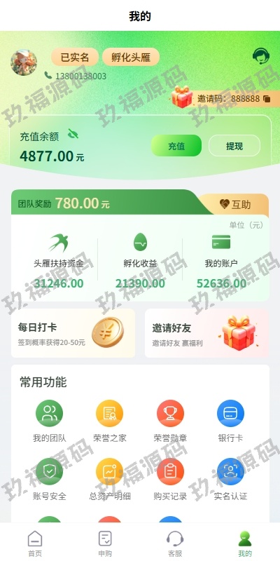 新UI投资认购系统,前端uniapp开发后端php全开源 支持签到,内部转账,三级分销,排名等功能