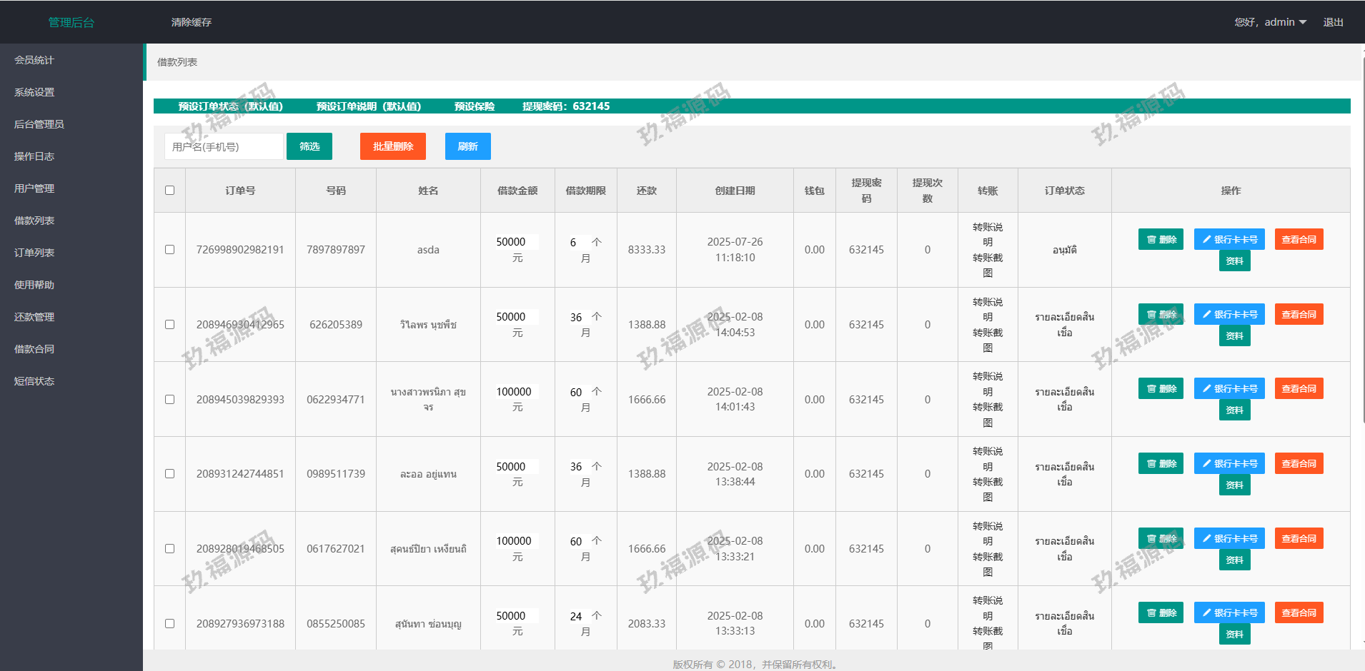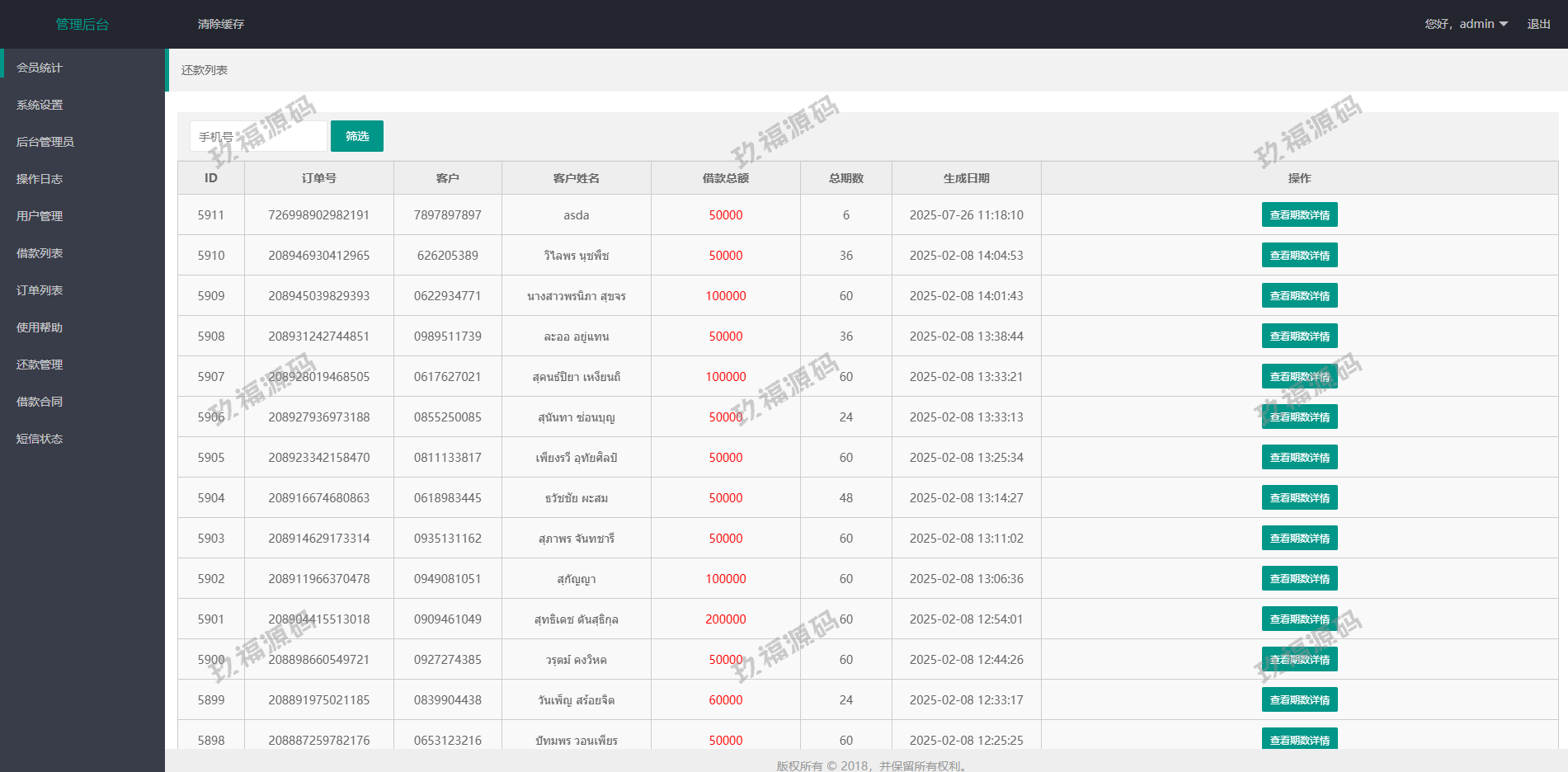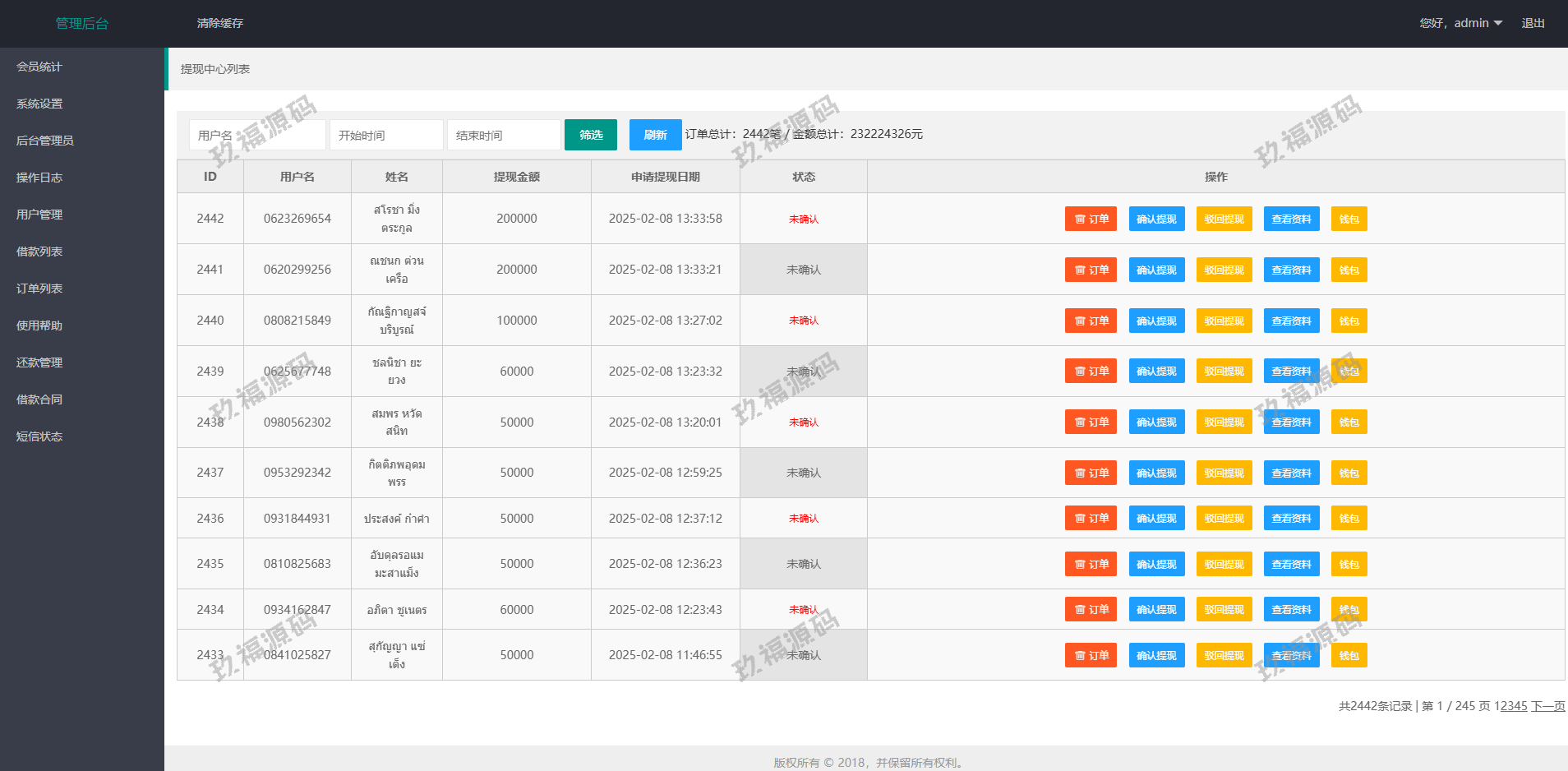 二开版泰国小额贷款系统,系统正常运营 前端单泰语,支持二开其他语言