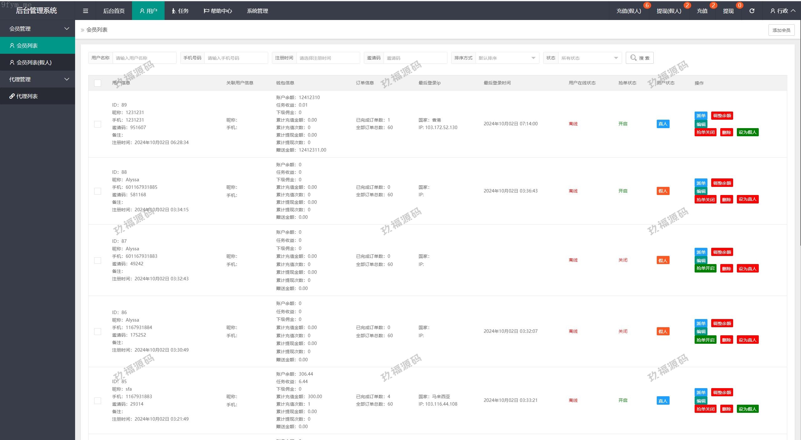 定制国际快杀盘抢单系统,亚马逊60关卡任务资金盘,前端vue,后端thinkphp,多语言玖福抢单刷单源码/快杀盘代理/业务员/亚马逊60关卡任务。