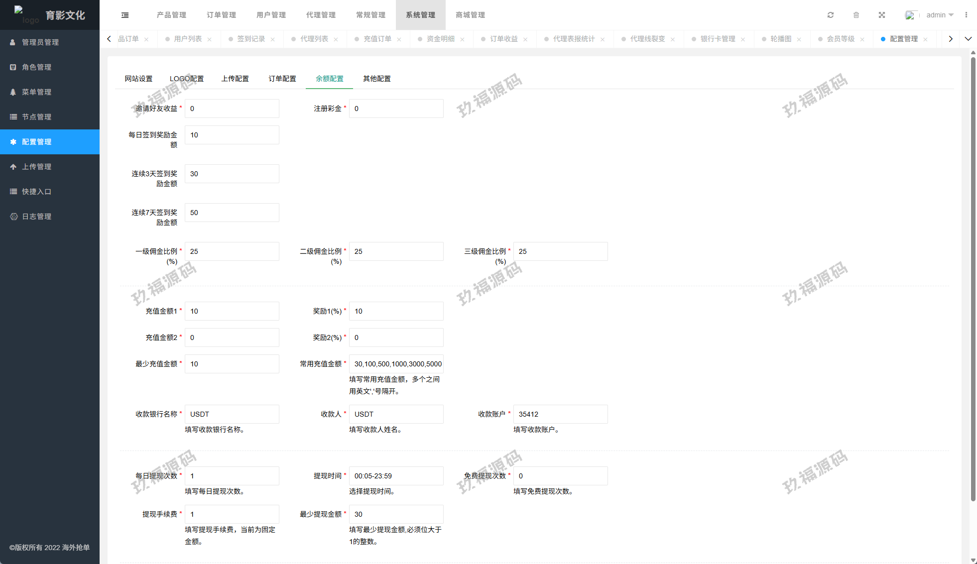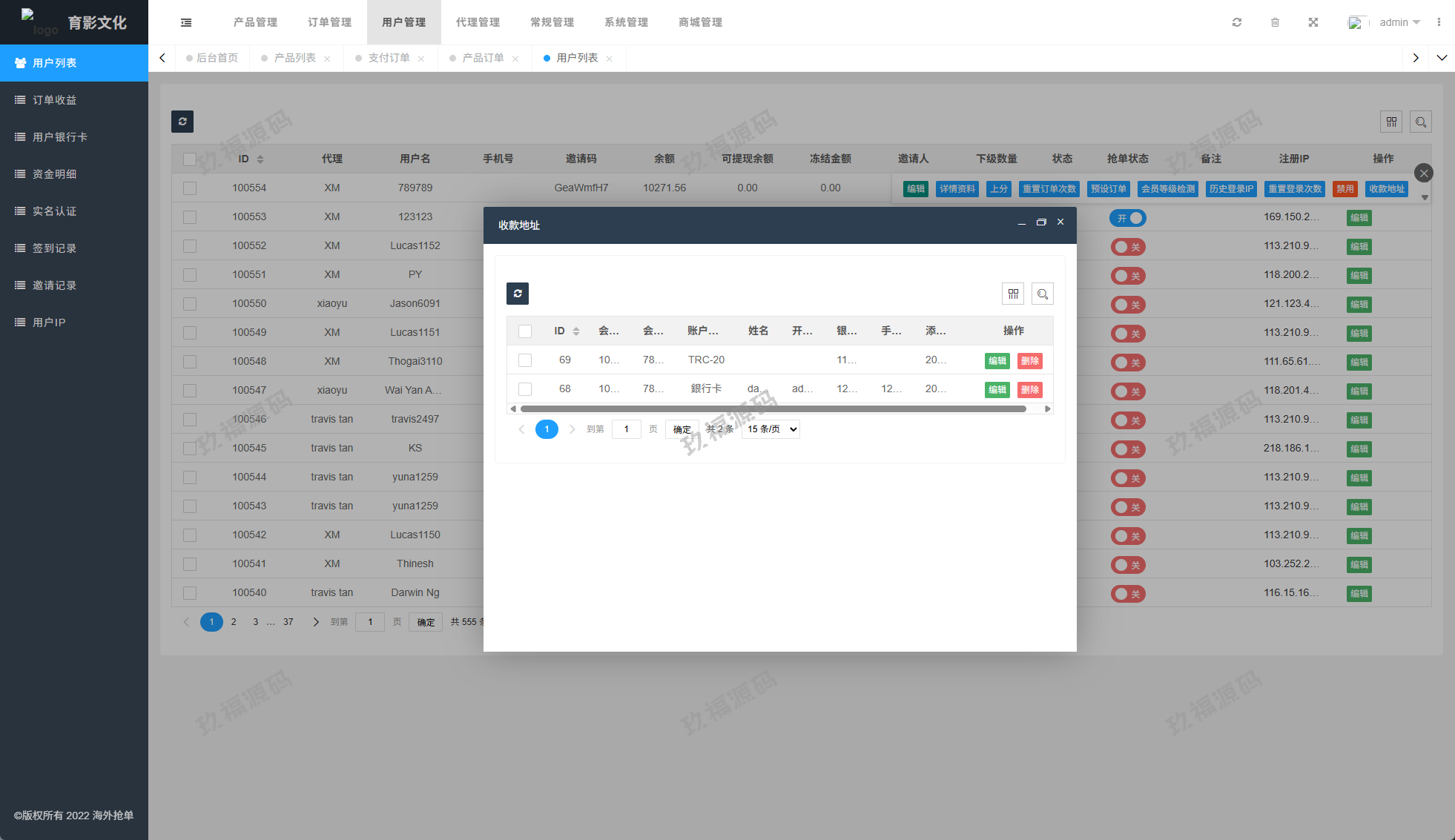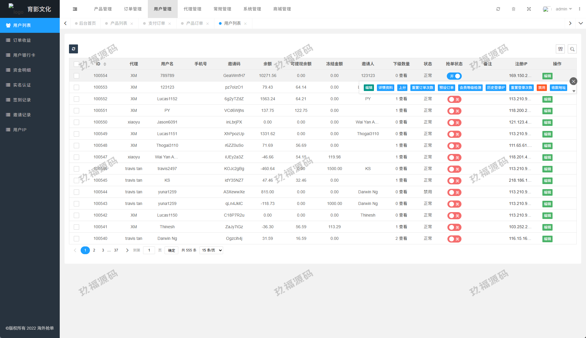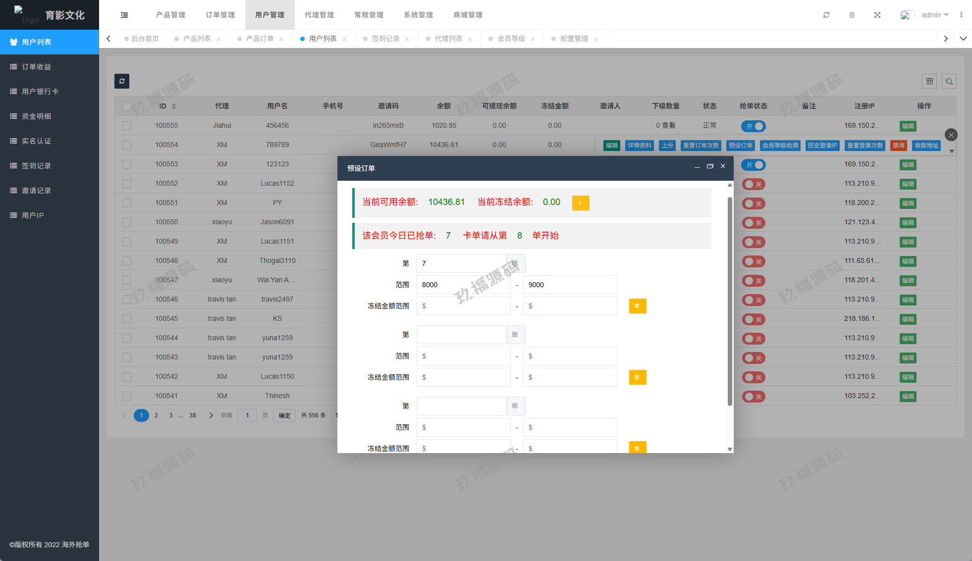 系统功能:抢单开关、预设订单、重置订单、签到、代理等功能