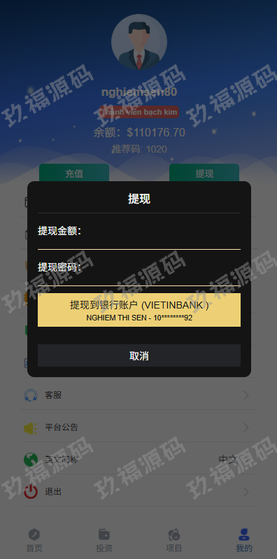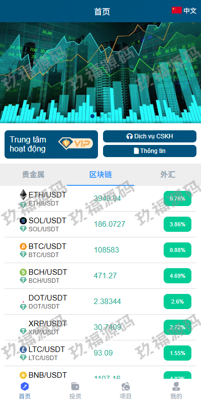 新版UI多语言微交易系统,带黄金外汇虚拟币产品交易 支持投资理财,自带内置客服系统,后台纯越南语