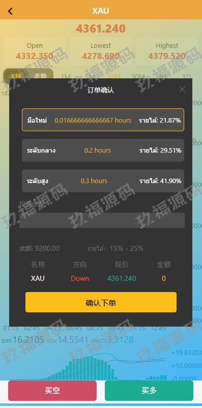 前端自带多语言,产品行情正常,订单控 支持实名认证,USDT跟银行卡提现