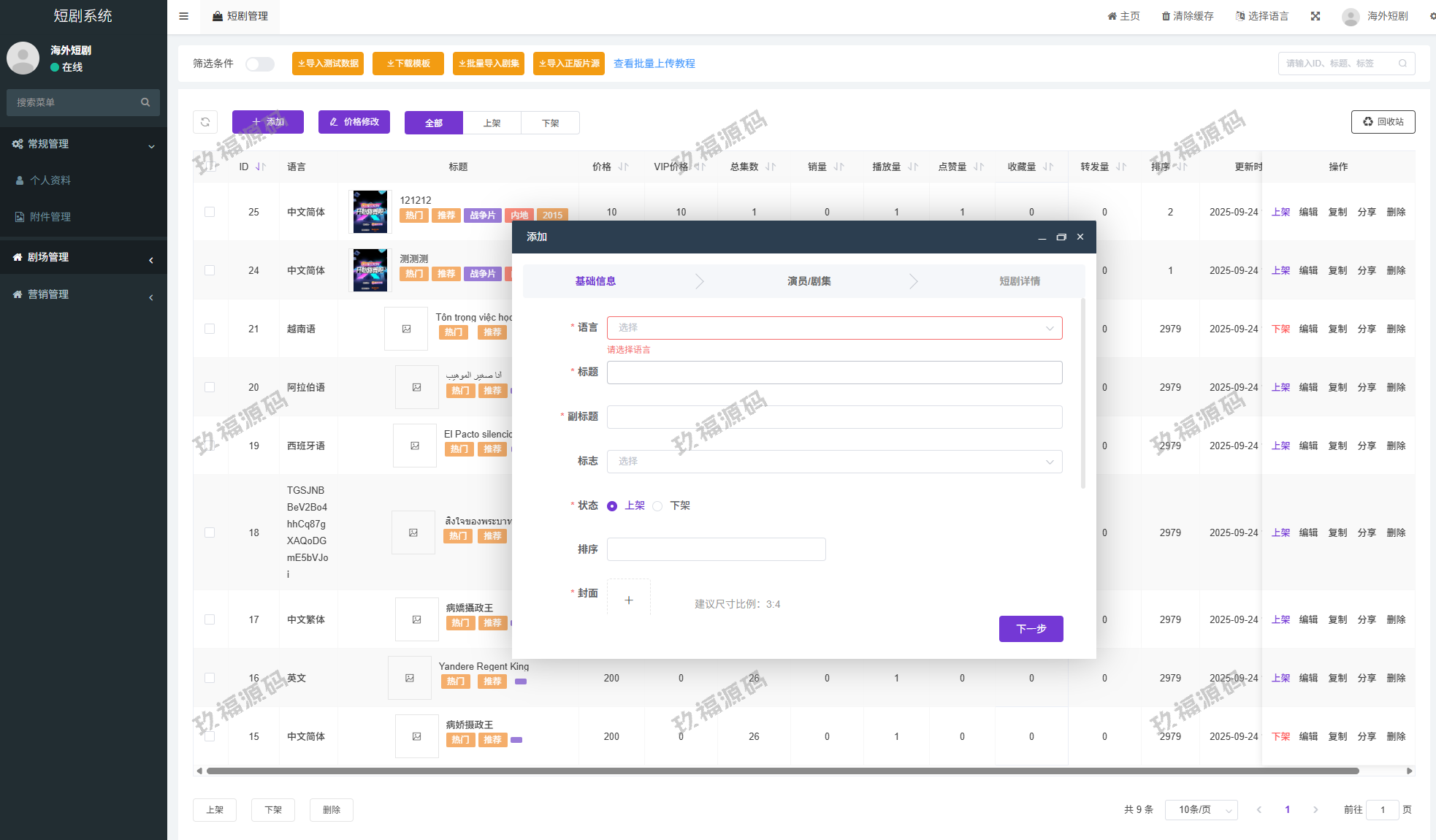 玖福短剧系统 多语言短剧 收费短剧剧集 saas版源码