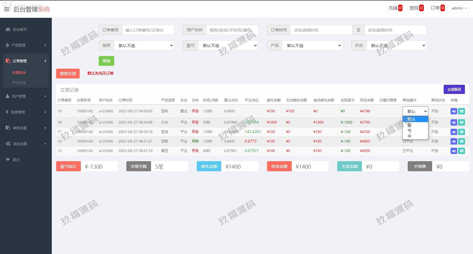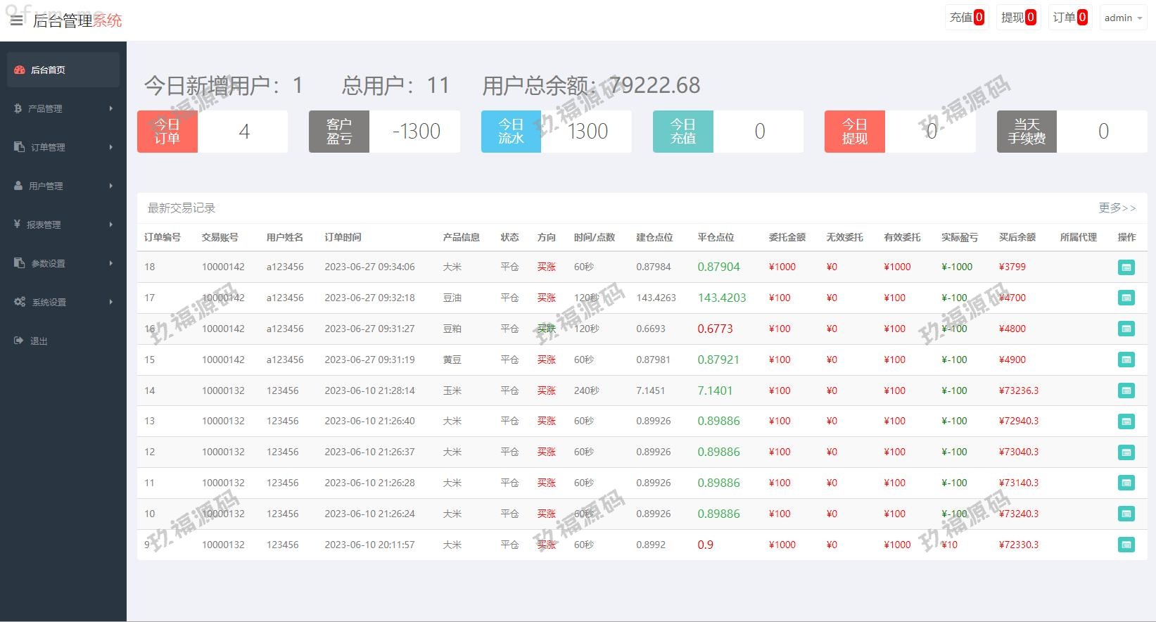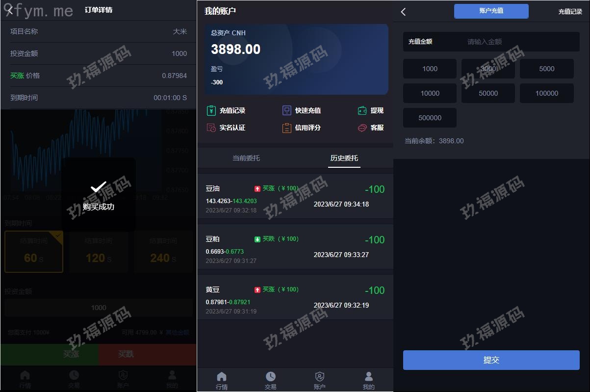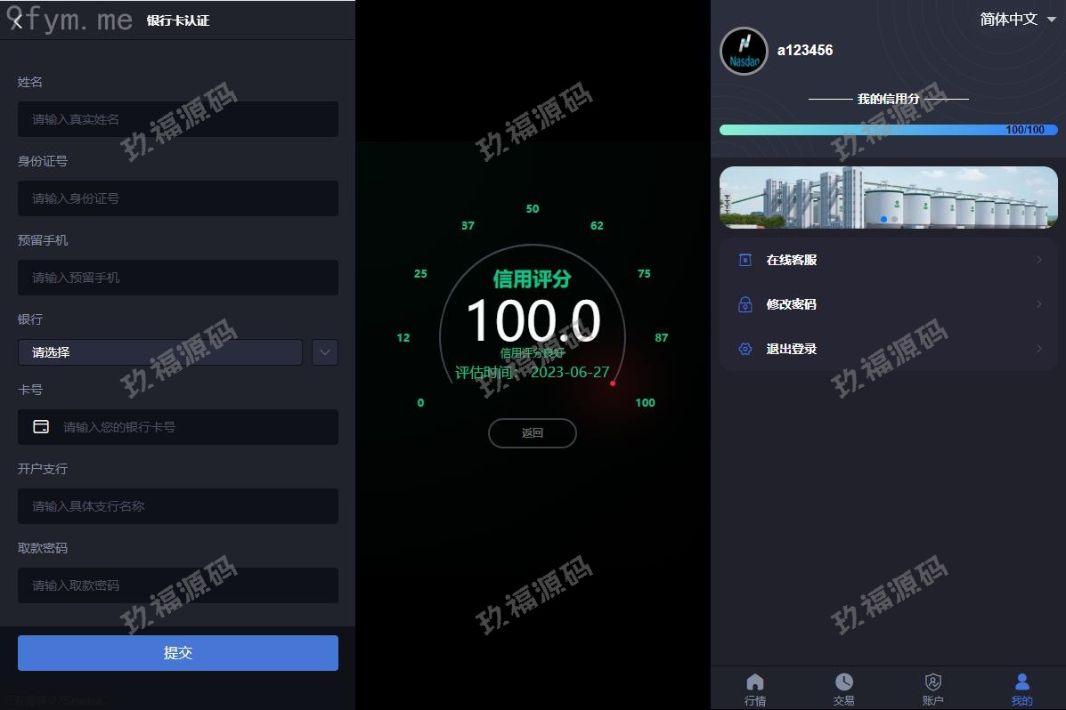 前端功能简洁,K线UI优美,用户信用分后台可更改
