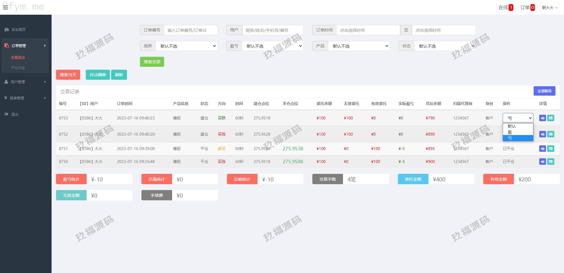 前端期货产品K线正常,新增一键买入、单用户风控等功能
