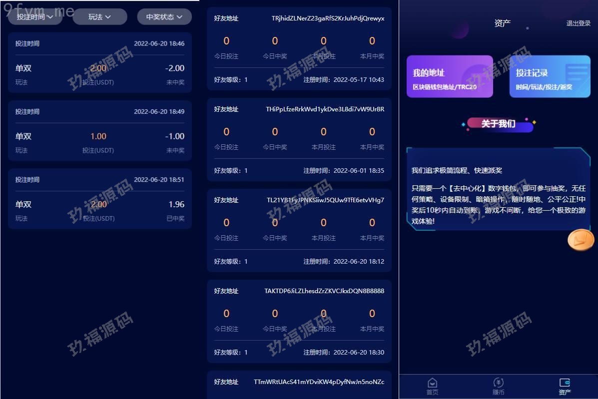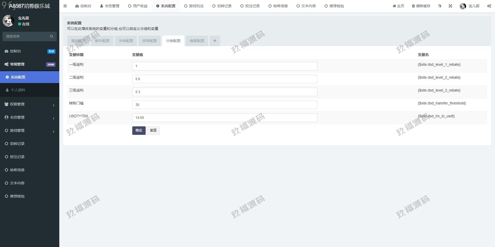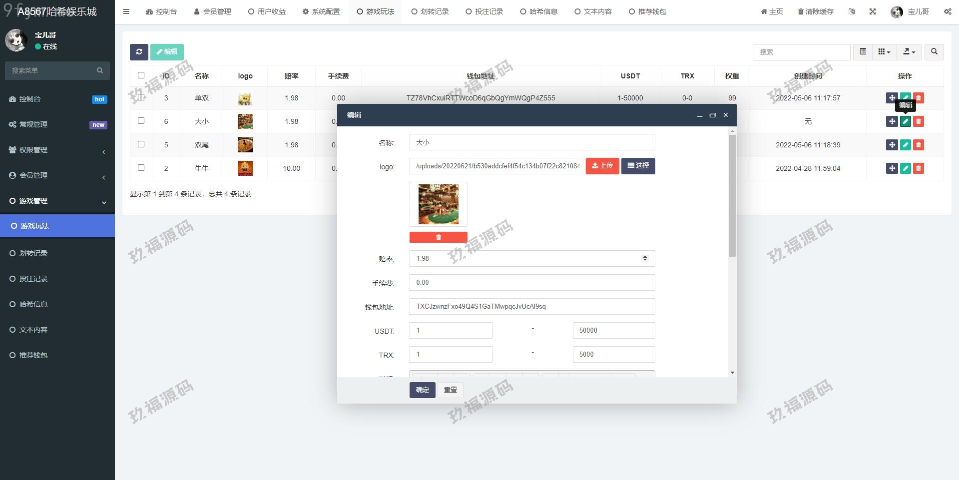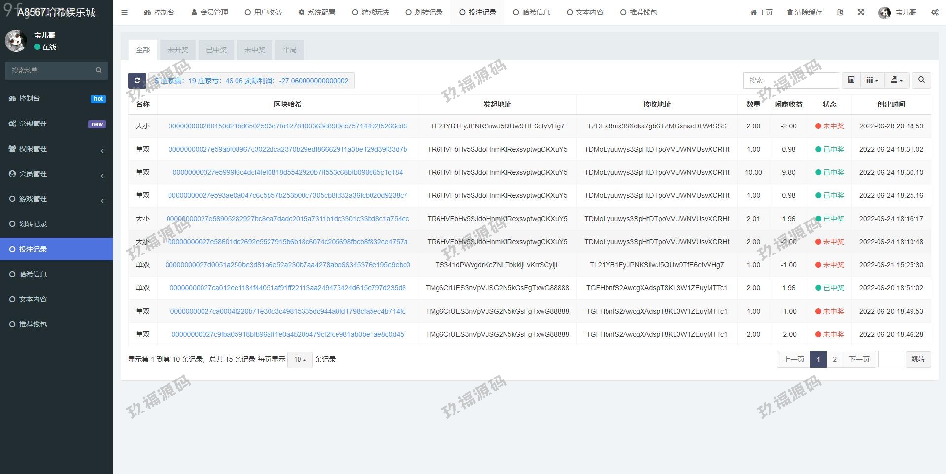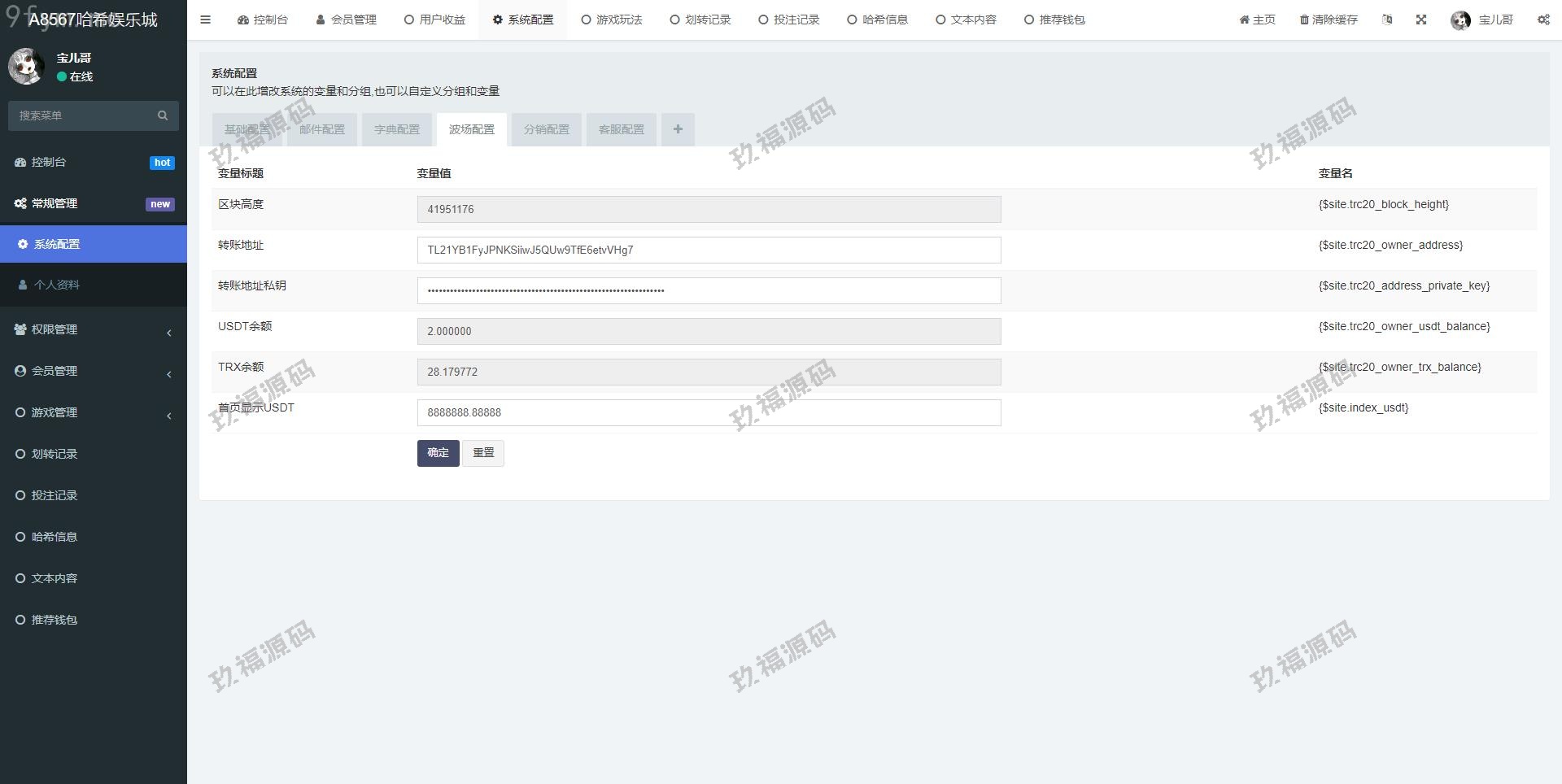 前端vue源码,后端FastAdmin框架,跟正常哈希没什么区别,这个是usdt/trx双玩法的