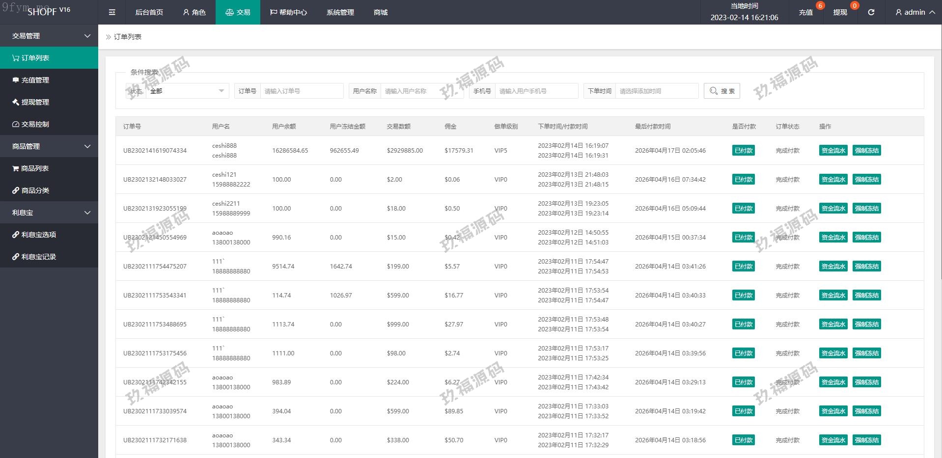 1.已经完成的订单可以强制冻结,并自己设定冻结时间。