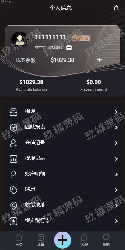 支持三级分销,带客服功能,优先级按等级排序,充值提现优先,完美的后台查询功能。