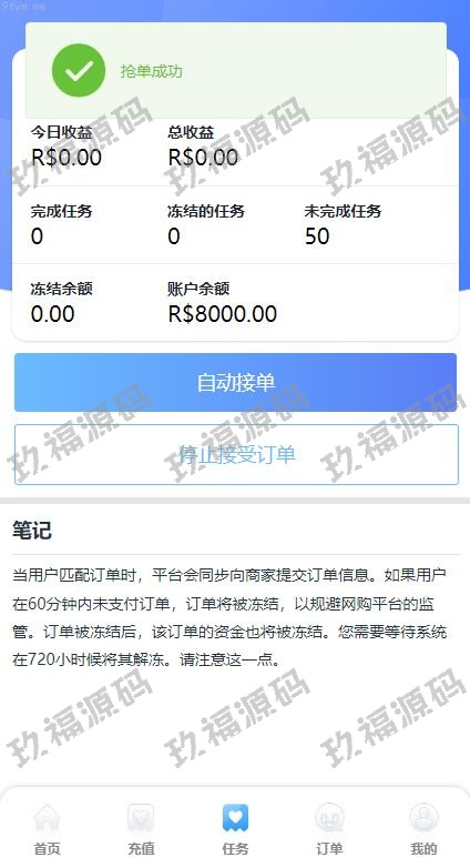 此系统为二次开发的玖福抢单平台,具备分组连单控制、自动生成入职记录、订单编辑、续期解冻等多项功能。系统前端支持多语言,内置多种语言包且可自行扩展;后台支持设置默认语言,并提供关闭前端语言选择开关的选项,方便灵活管理语言配置。