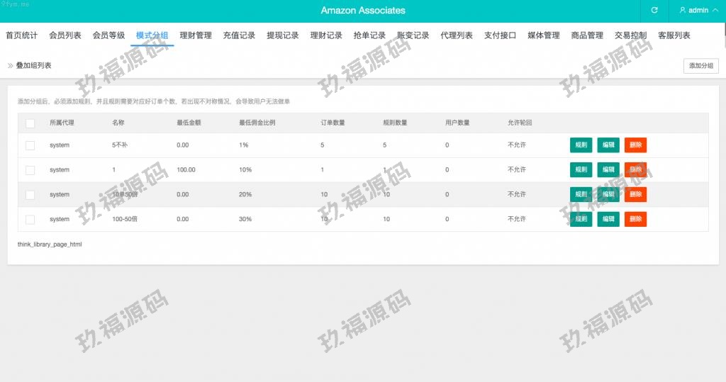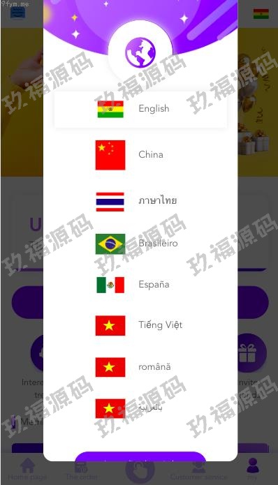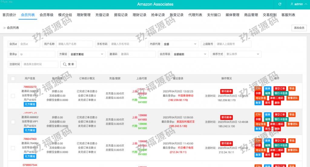 前端采用 Vue 框架开发,支持多语言功能,但目前语言包仅提供中文、英文、泰文和葡萄牙语。后端基于 ThinkPHP 框架,系统具备叠加组、打针、余额宝等功能,并支持 USDT 充值及权限代理管理后台。