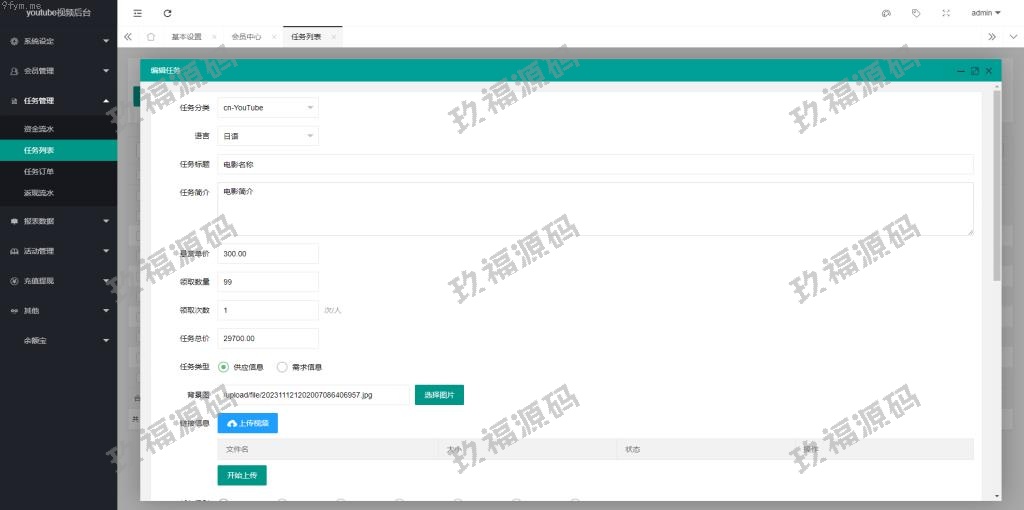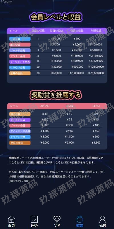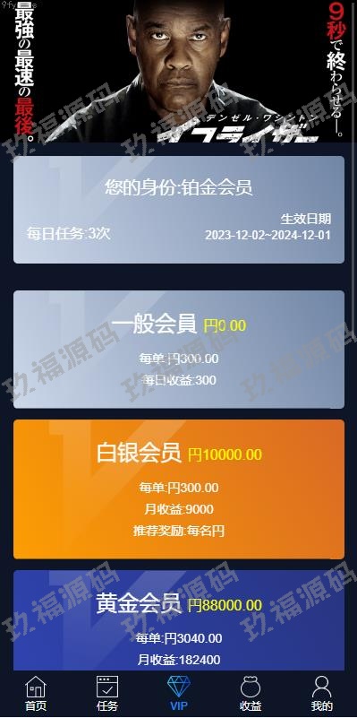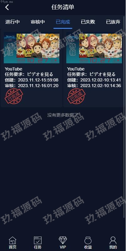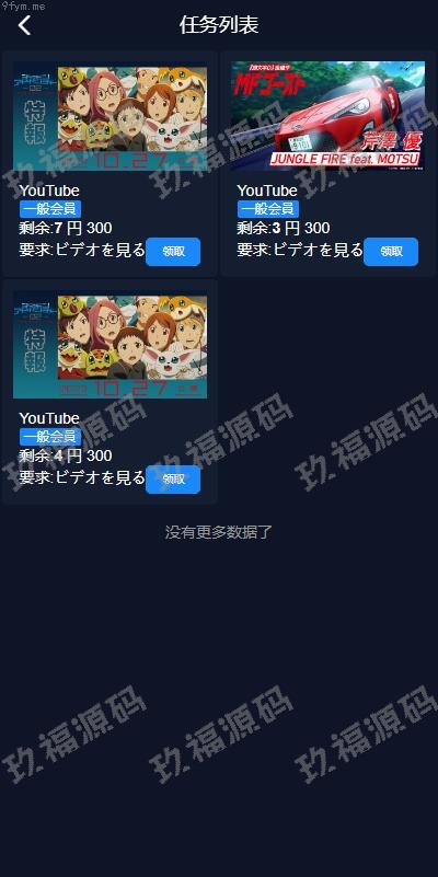 二次开发版视频返利系统,前端采用Vue开发,后端基于ThinkPHP框架,全部开源并提供完整源码。前端源码支持多语言,默认语言为日语,后台可添加任务并上传视频。玩法简介:会员通过购买套餐进行升级。领取任务后,观看视频时间到达时订单自动完成。会员可分享邀请链接,邀请好友注册后将获得提成奖励。