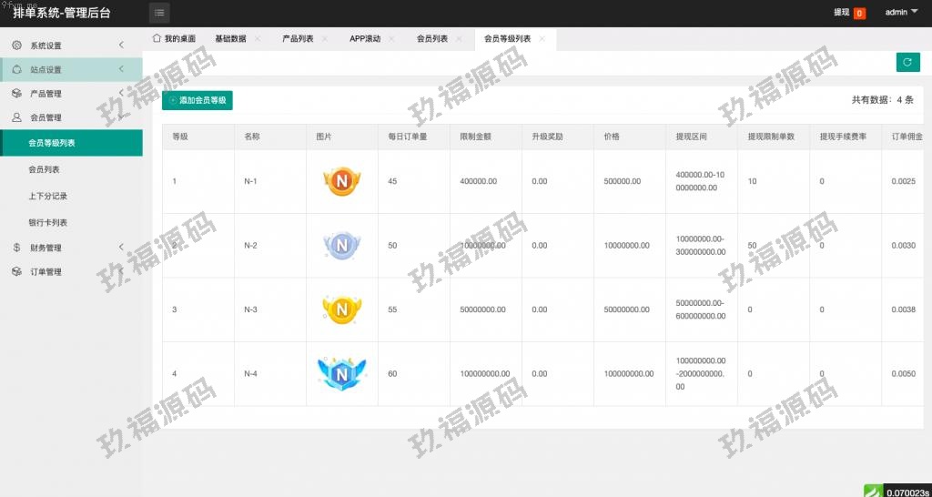 前端UI经过二次开发,采用uniapp开发,提供完整源码。支持多语言,默认语言为越南语(已屏蔽),后端基于ThinkPHP框架,源码完全开源。具备5级返佣功能,后端的卡单和连单功能完美运行,代理系统为权限代理模式。