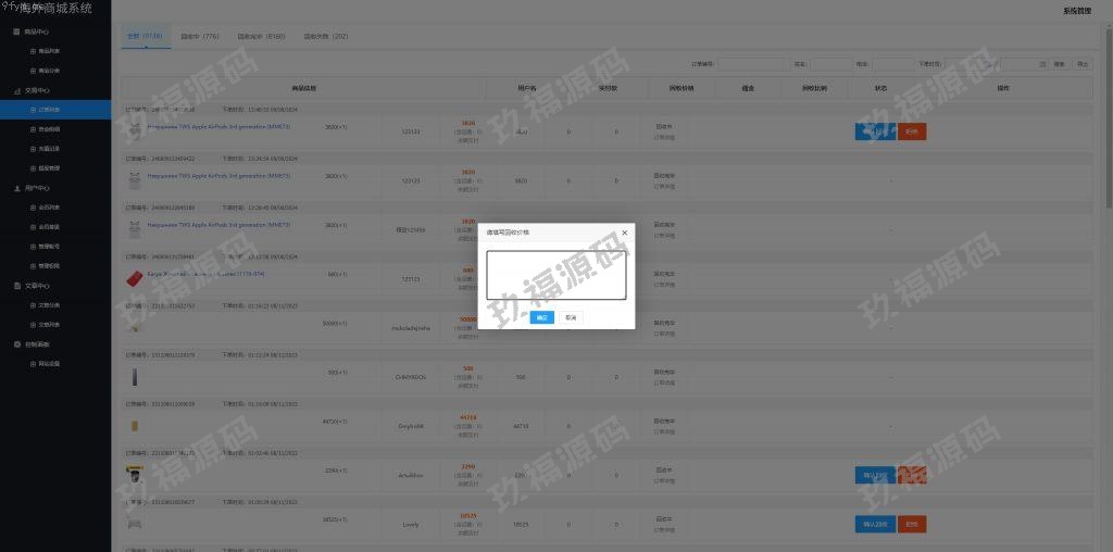前后端UI进行了二次开发和定制,前端新增多语言支持:中文、英文、越南语、波斯语和乌克兰语。系统支持用户订单提交回收,后台可自定义设置回收价格,需要请联系客服。