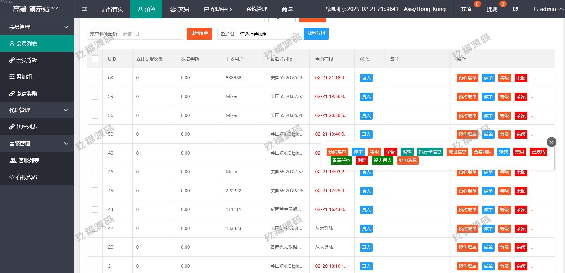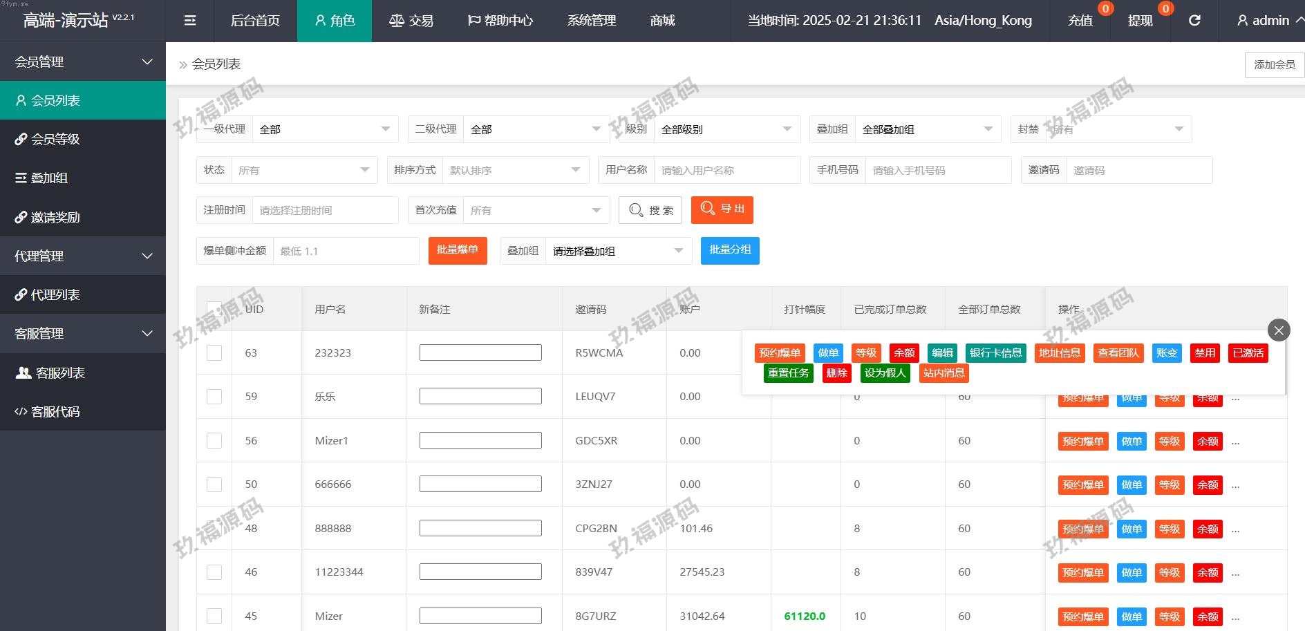 系统支预约爆单、叠加组、余额宝、时区设置/信用分/代理系统等功能。