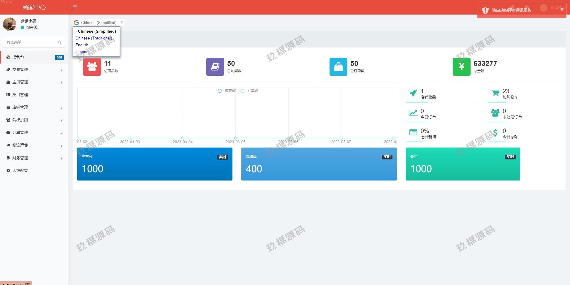 此套是别人二开香港的多商户商城系统,后端Fastadmin框架前端uinapp