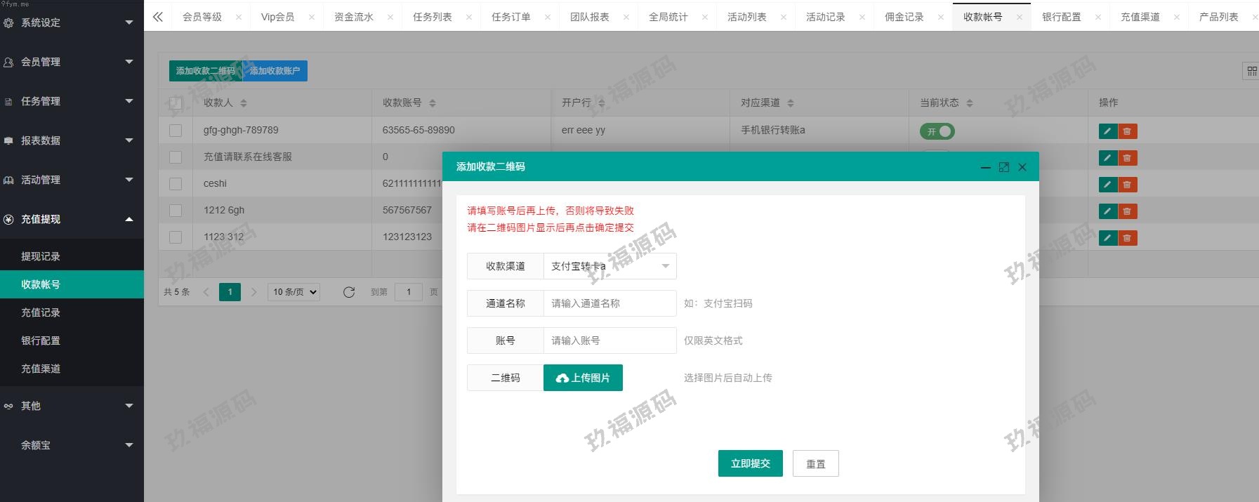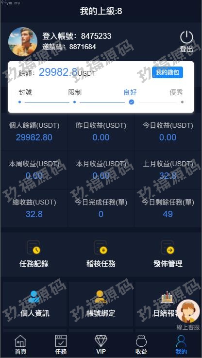 可自定义设置自己的网站域名,客服qq,app名字等等、余额宝理财,财务明细等等!