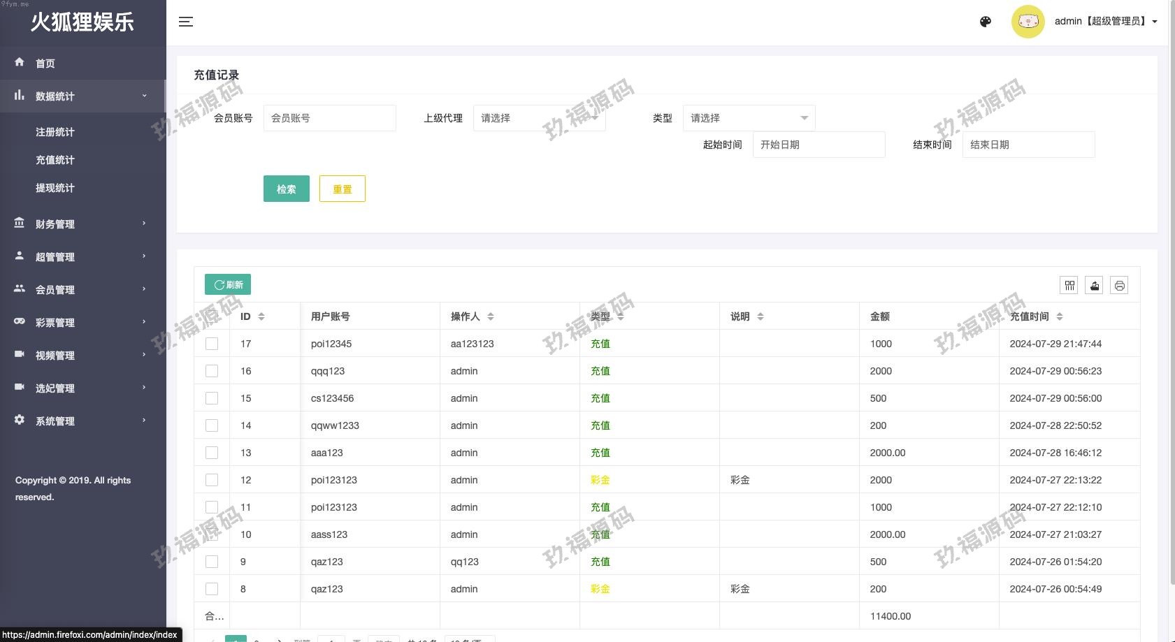 充值提现统计 查询。