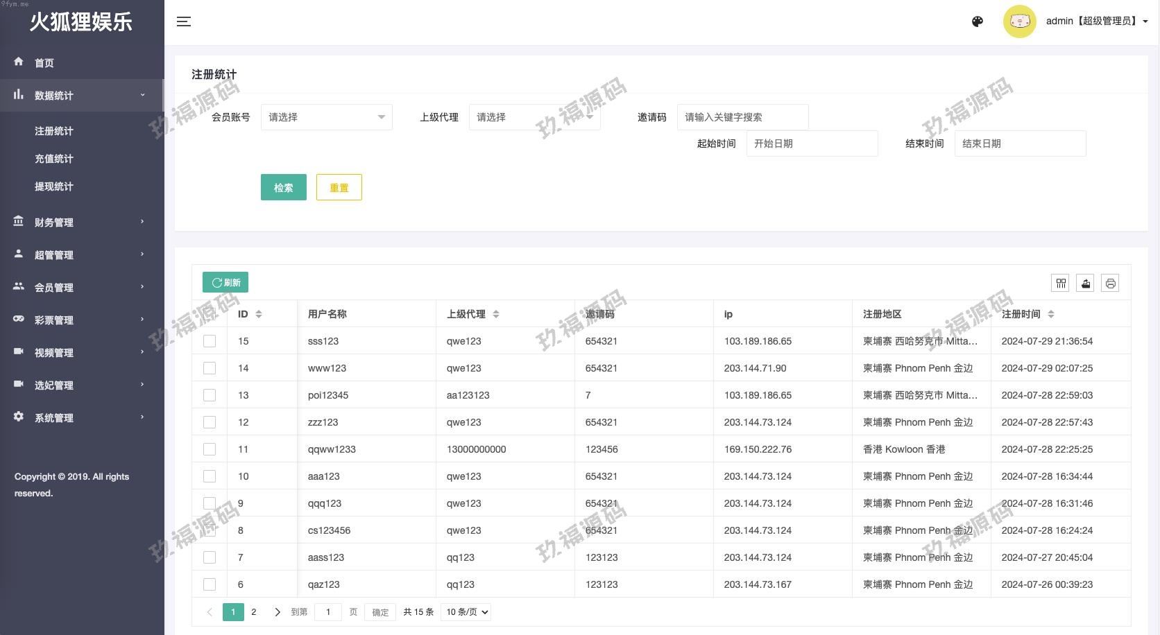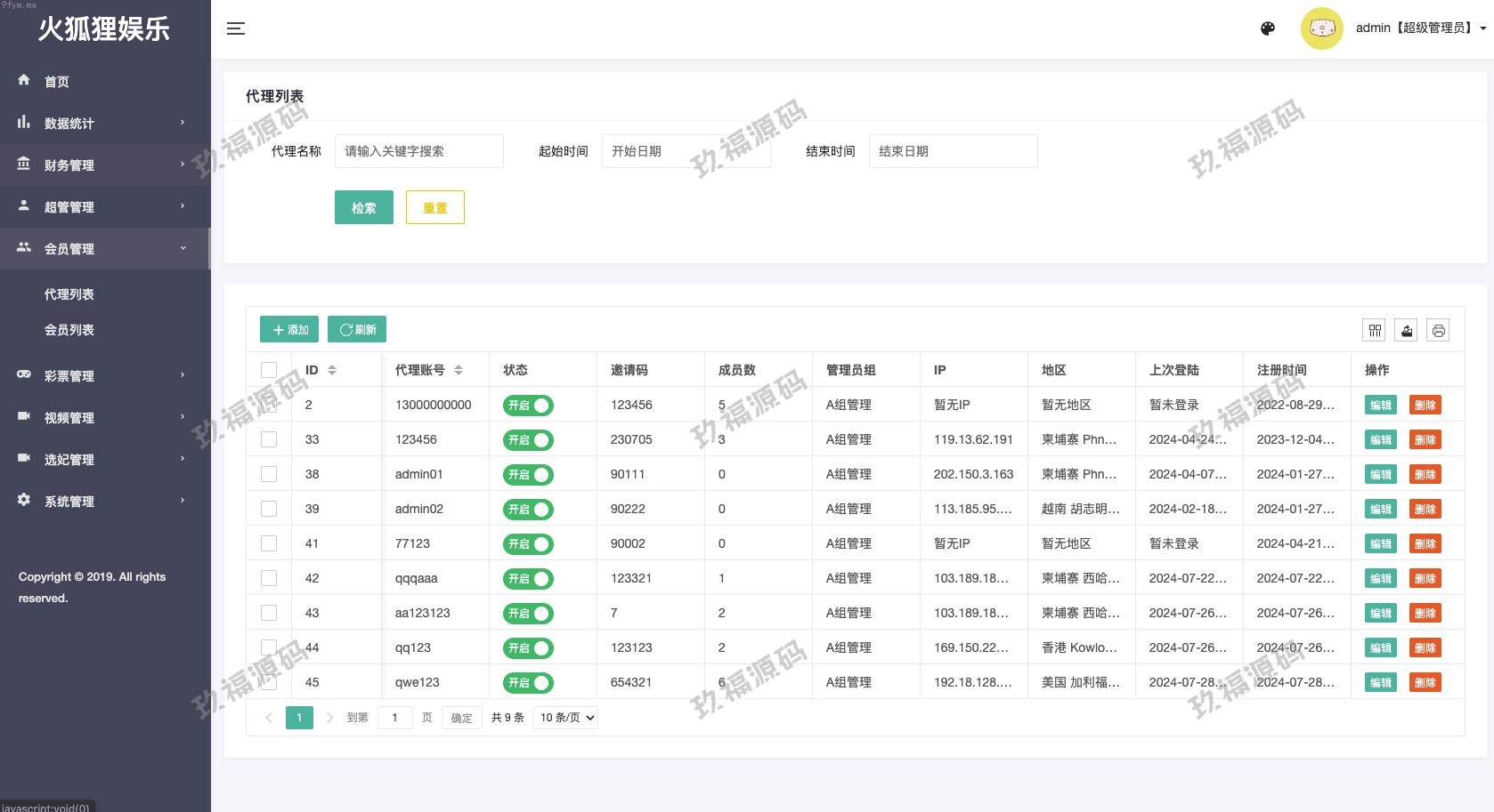 代理线只显示自己下线的数据。