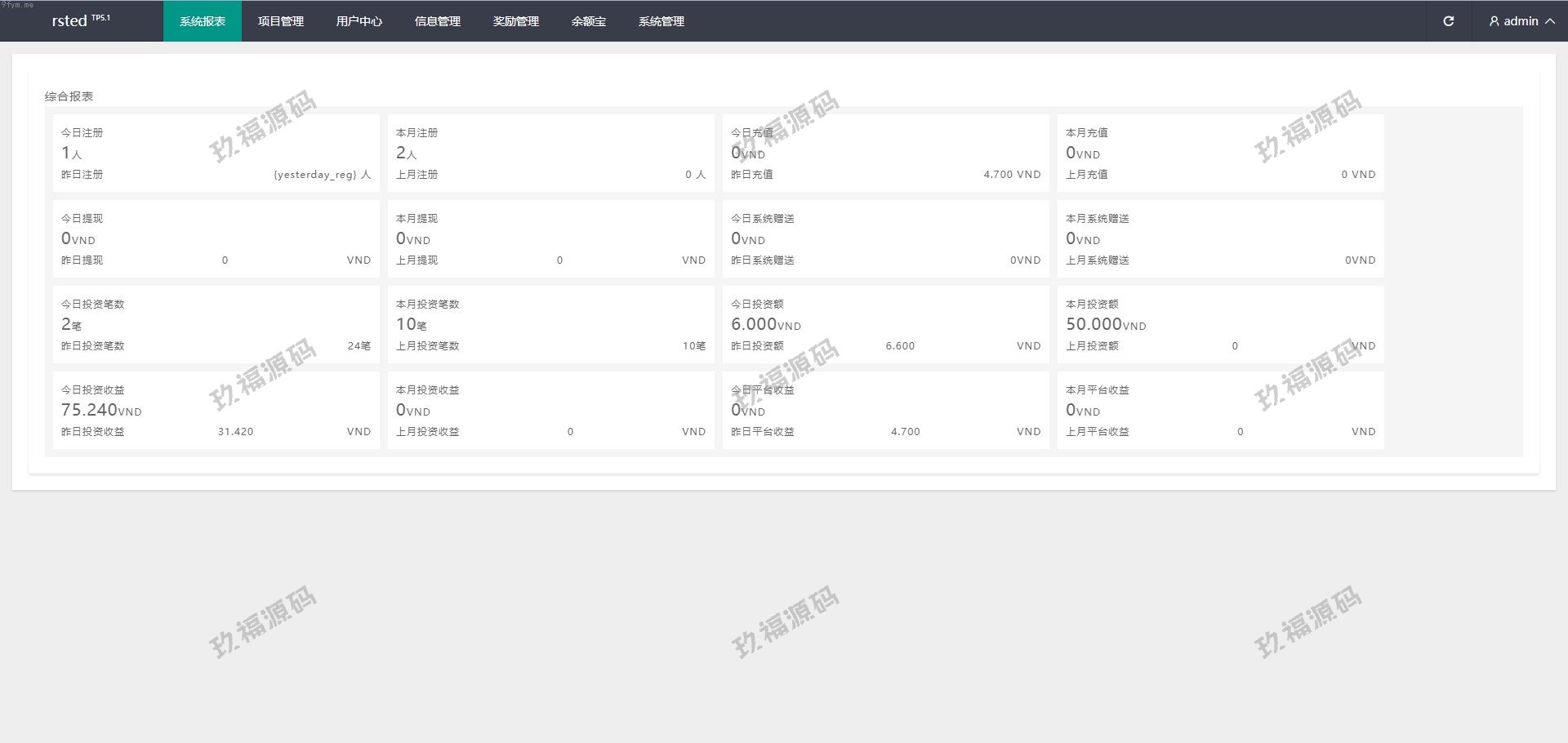 前端vue开发带源码,后端使用thinkphp。理财系统带幸运转盘。