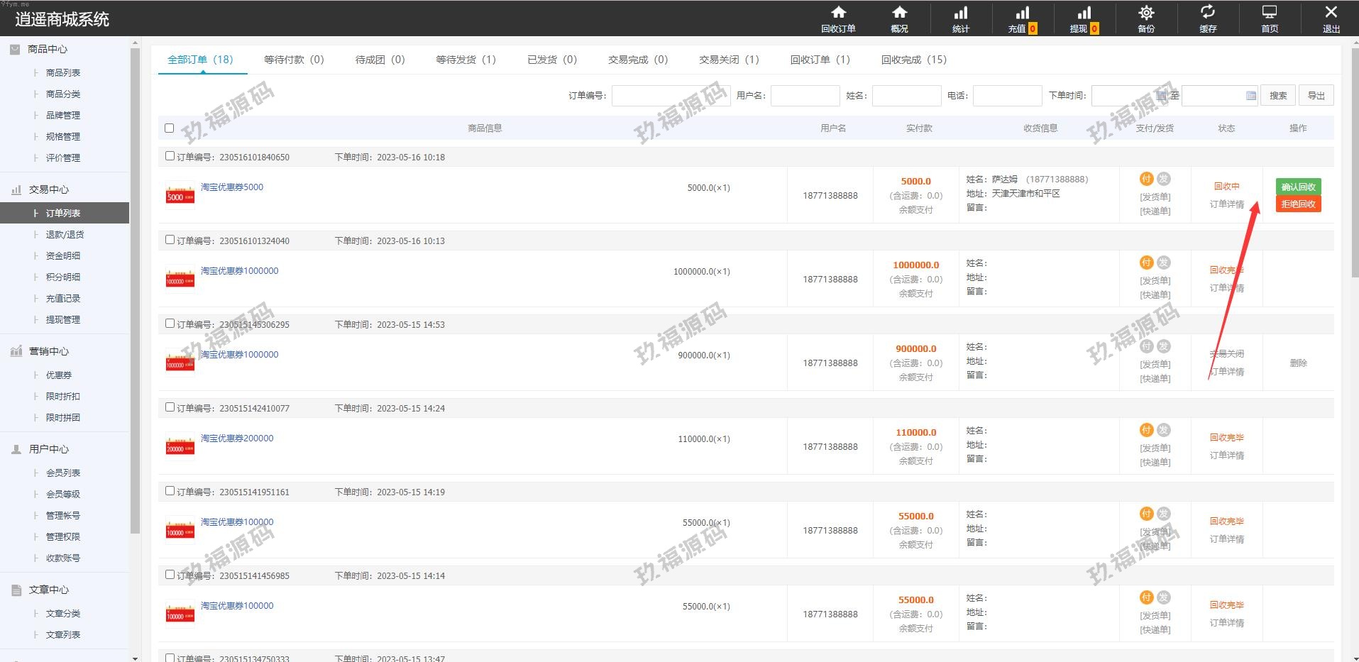 回收系统直接集成系统不需要二开搭建,前台提交后台订单直接回收,新增功能每个商品可设置回收已经二开完整