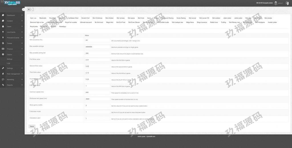 该系统支持控制奖金、设置最大获胜限额、以及最小/最大投注等完整的风险控制功能。源码支持八种语言,并提供Paypal、人工充值、BTC等多种支付方式。