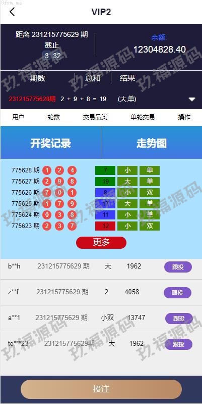 全新UI设计的玖福PC 28竞猜系统,支持简体中文、繁体中文、英语和日语等多语言界面。新增批量预设开奖号码功能,且源码完全开源,方便用户自由定制和扩展。