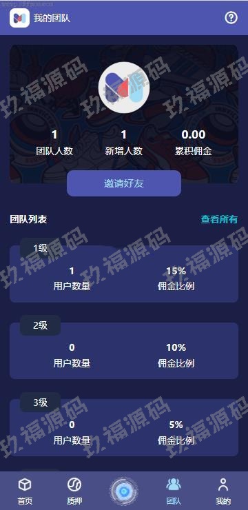 11、支持三级分销,下级质押上级能获得对应百分比奖励