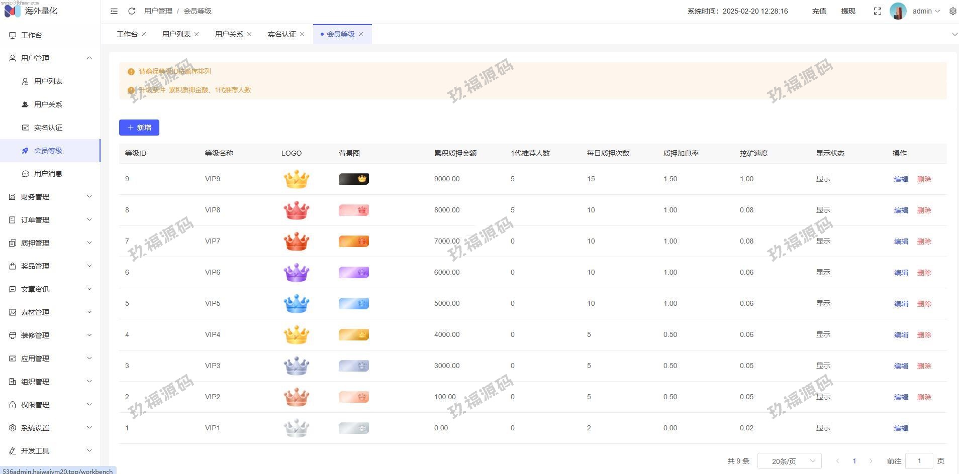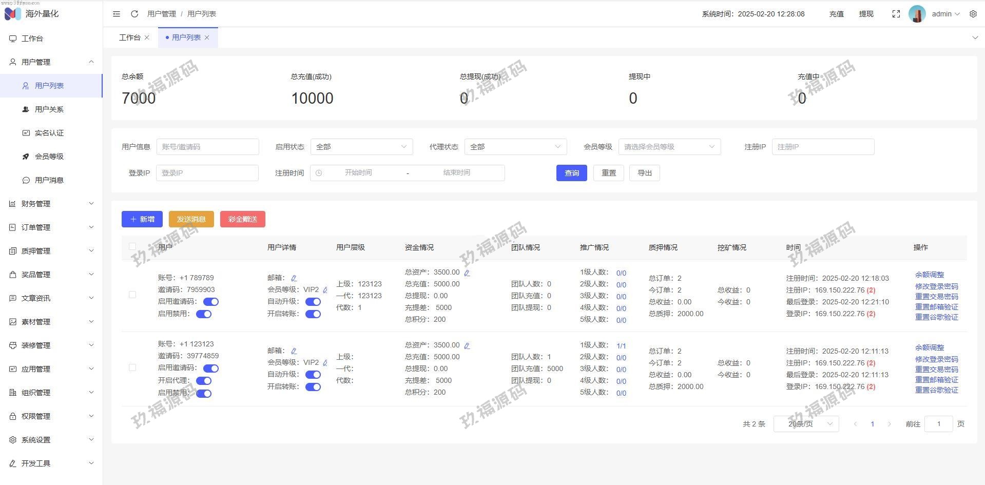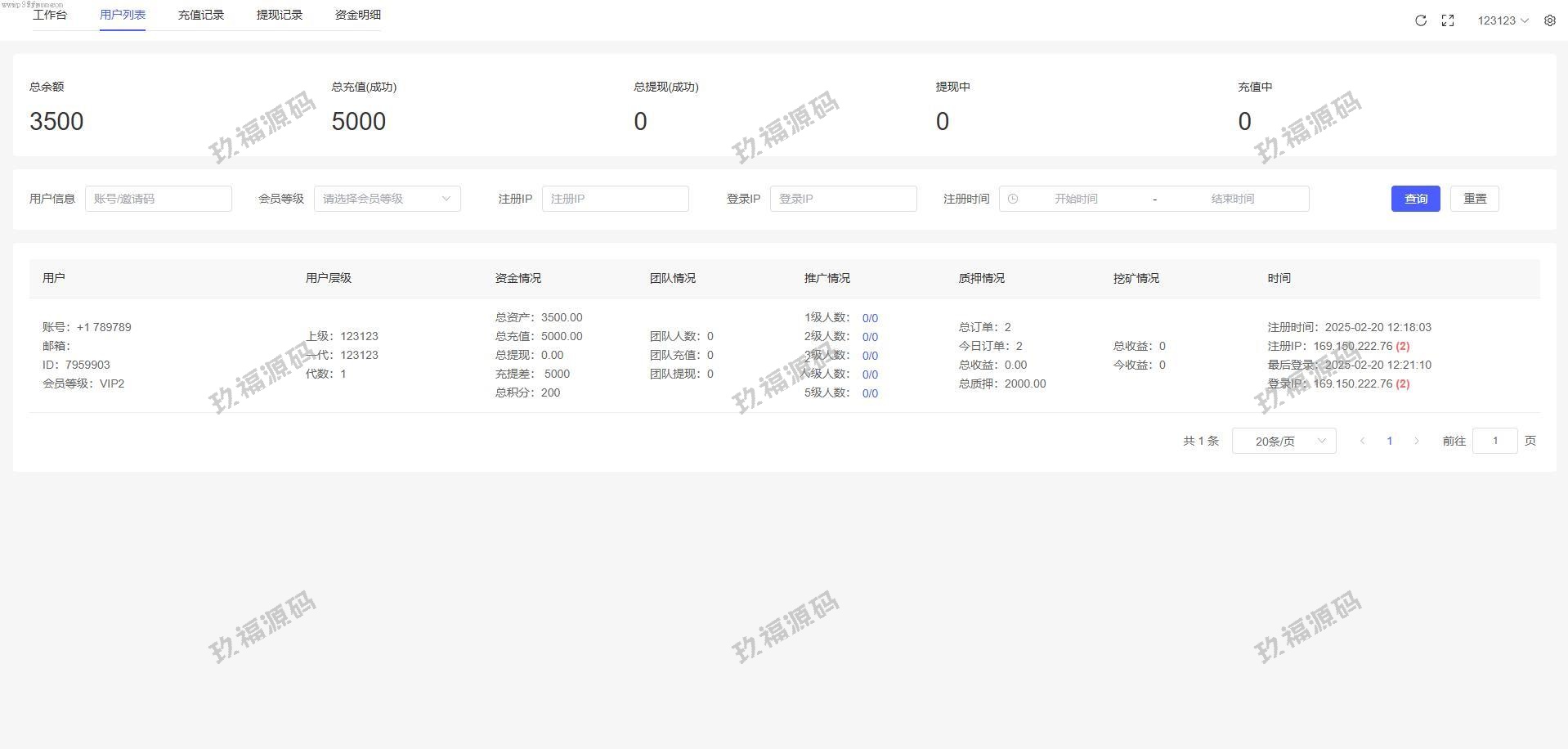 17、代理功能,后台开启用户为代理,即可登录代理端查看代理下级用户情况