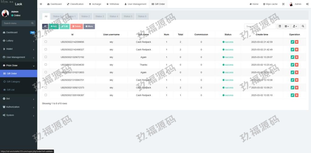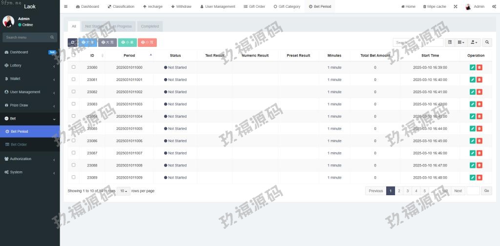 该程序为全开源版,无任何加密,支持双语言,站长可二次开发。主要用于下注和竞猜,后台支持控制开奖,需在玖福服务器运行。已修复开奖程序中的Bug,新增后台功能,支持修改用户信息。