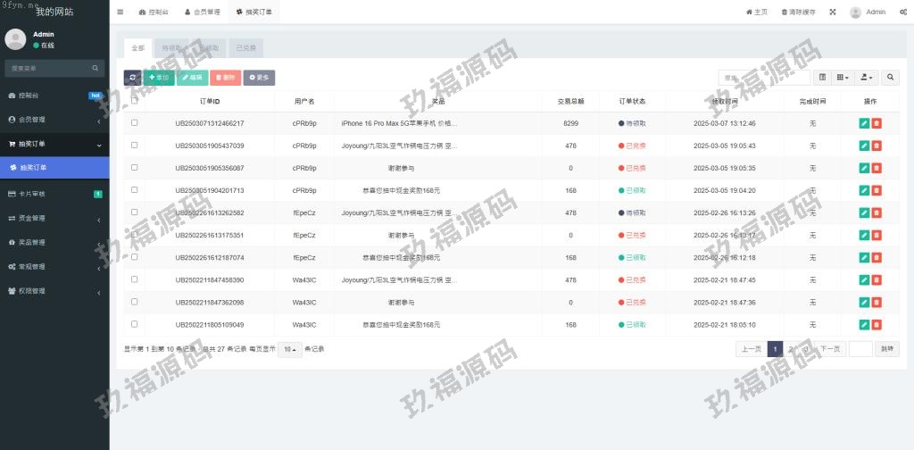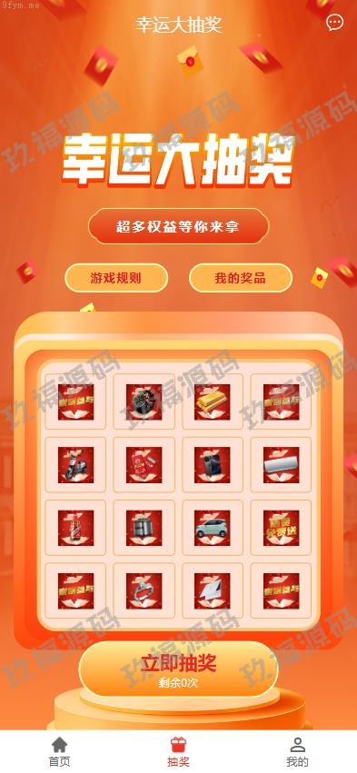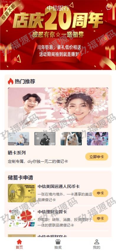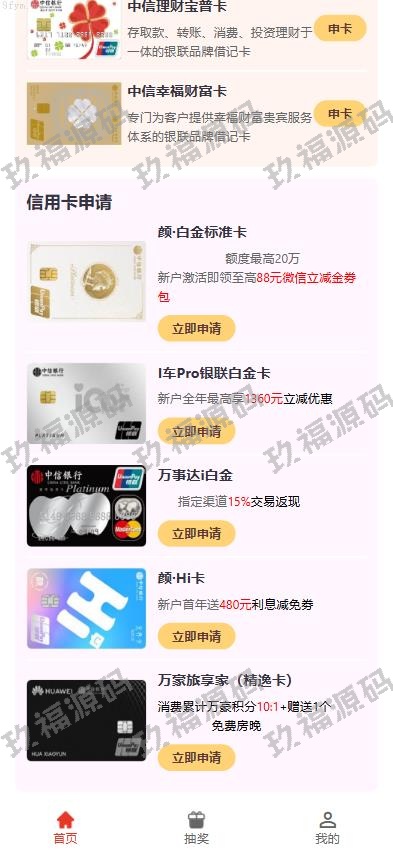 新版信用卡 抽奖 反现 最新UI系统 玖福源码 预设奖品 多渠道付款方式