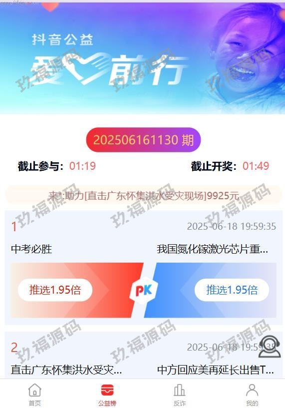 全网独家开发/公益榜源码/抖音公益系统源码/全网独家精品/爱心公益源码/抖音竞猜,公益竞猜活动源码_抖音话题竞猜系统源码_前端html_后端PHP,本系统比较贵,咨询客户购买。