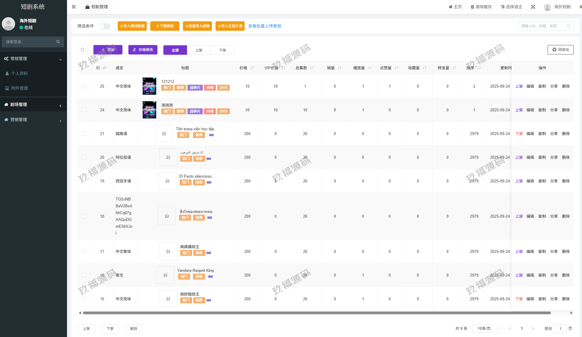 多语言玖福短剧集收费系统 前端uniapp开发,后端php带教程跟前端源码