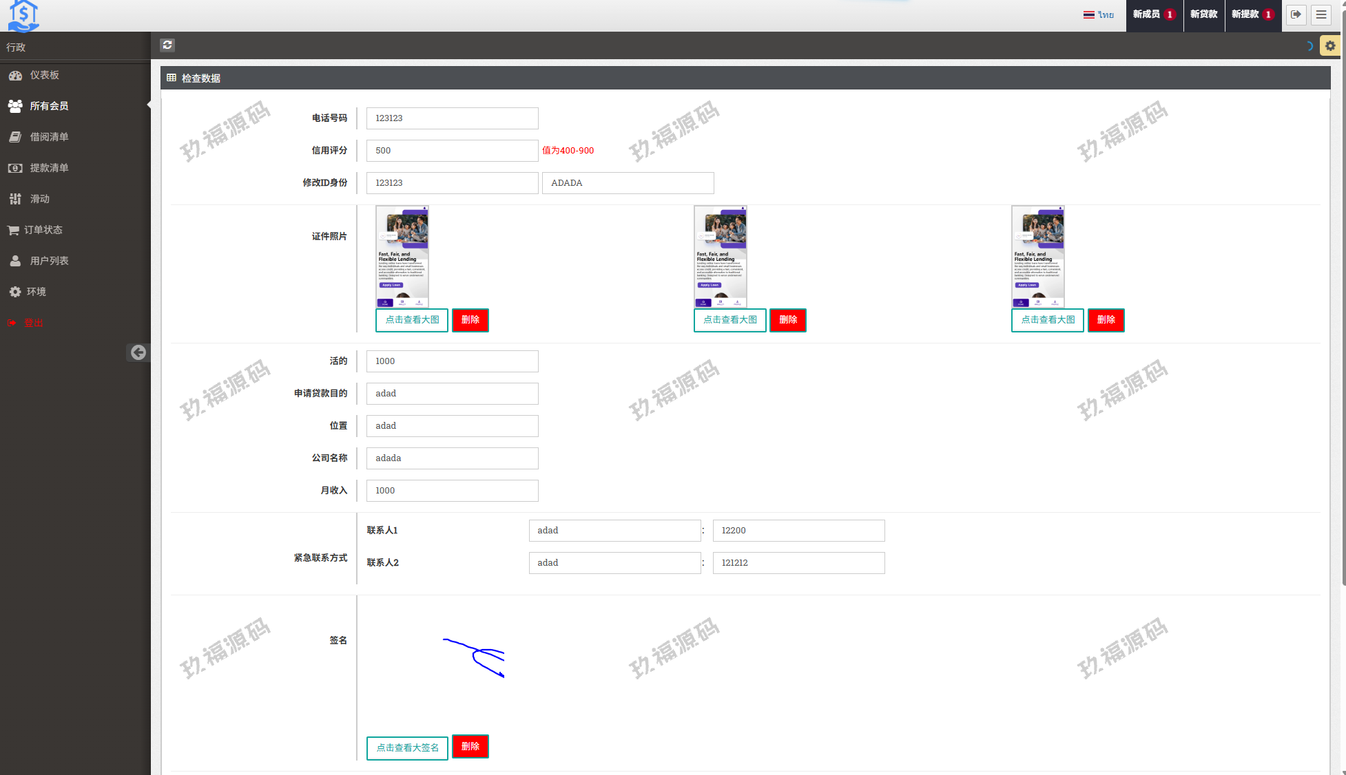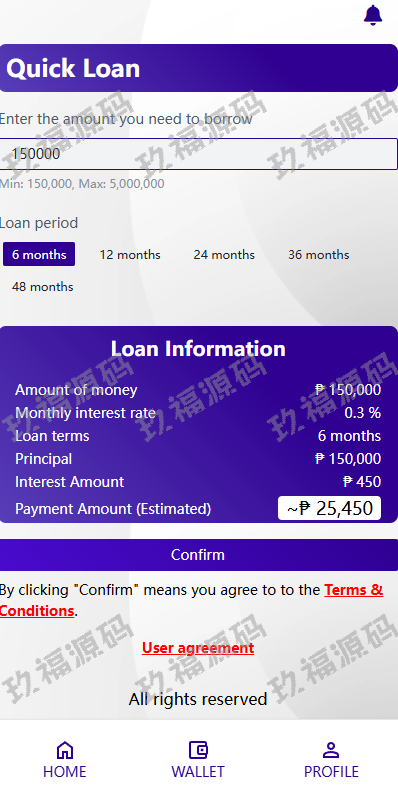 玖福贷款平台 小额贷款系统 信用分 合同 提现码