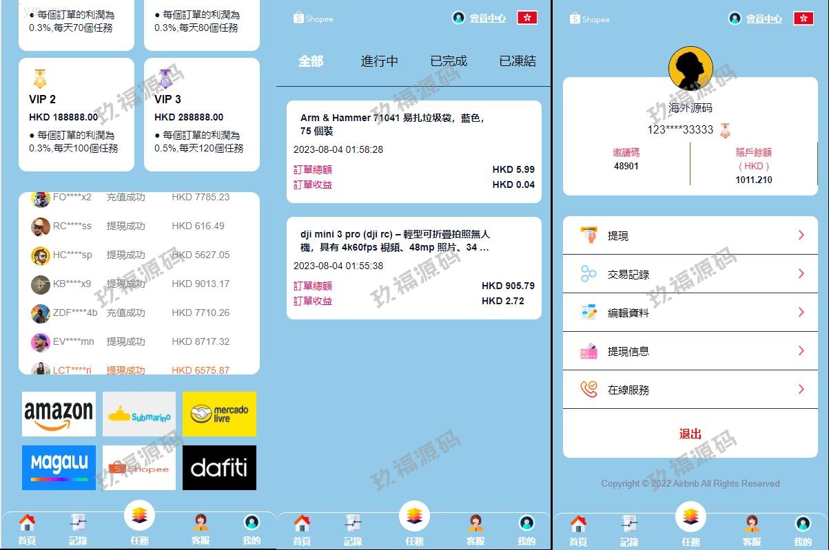 此套刷单前端UI全新设计,前端语言英语,繁体,可二开其他