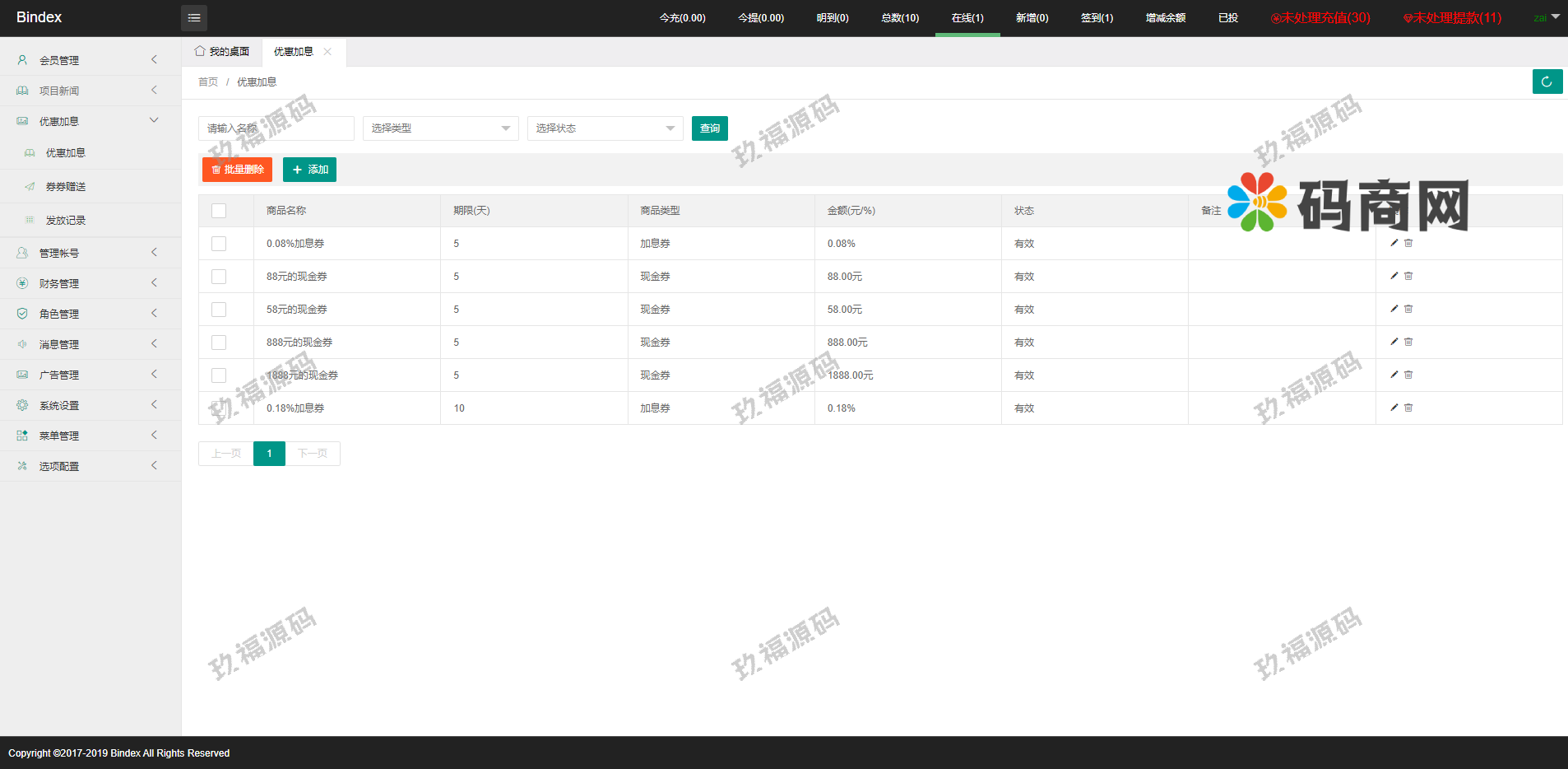 新功能:在线客服、在线会员、优惠加息、券券赠送、虚拟币充值等功能