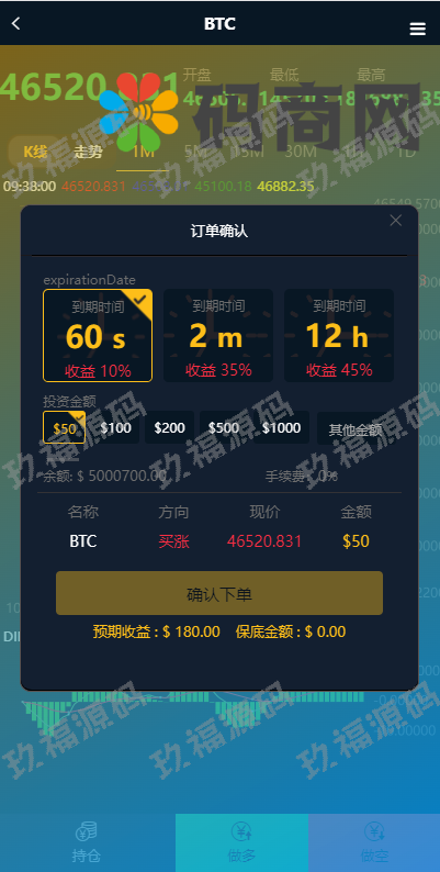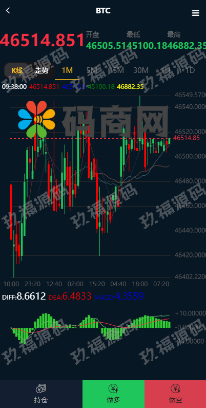 K线完美正常实时跳动,需要国外服务器安装,系统为虚拟币USDT充值