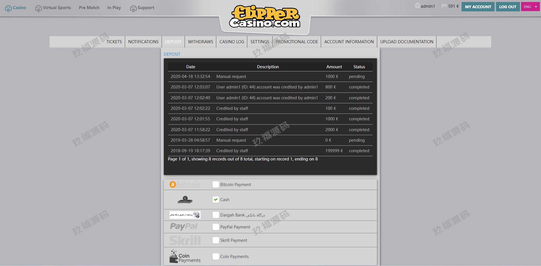 系统支持八国语言,50种游戏,支持 Paypal、人工充值、BTC多种支付