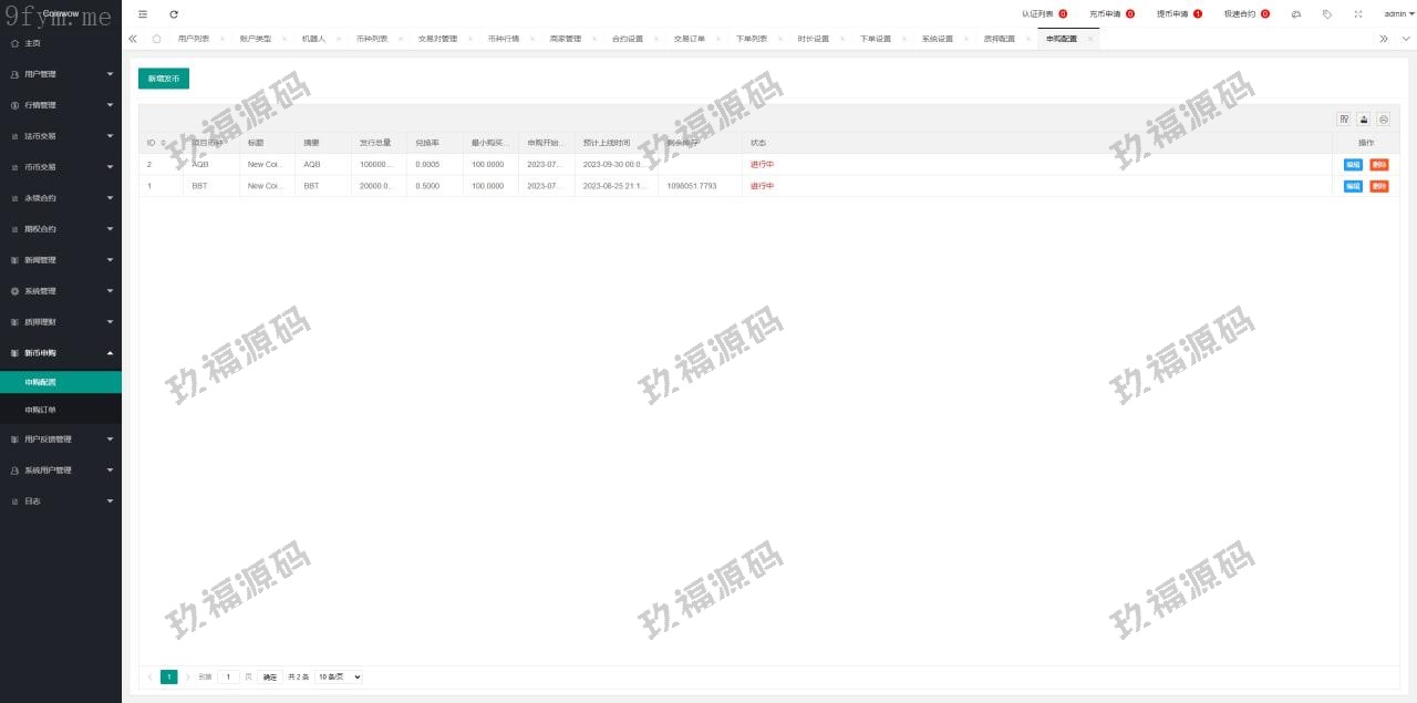 系统功能:平台币、期权交易、合约交易、质押挖矿、认购等功能。支持用户单控、期权订单控制。