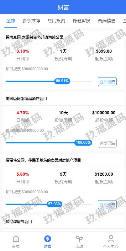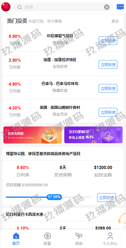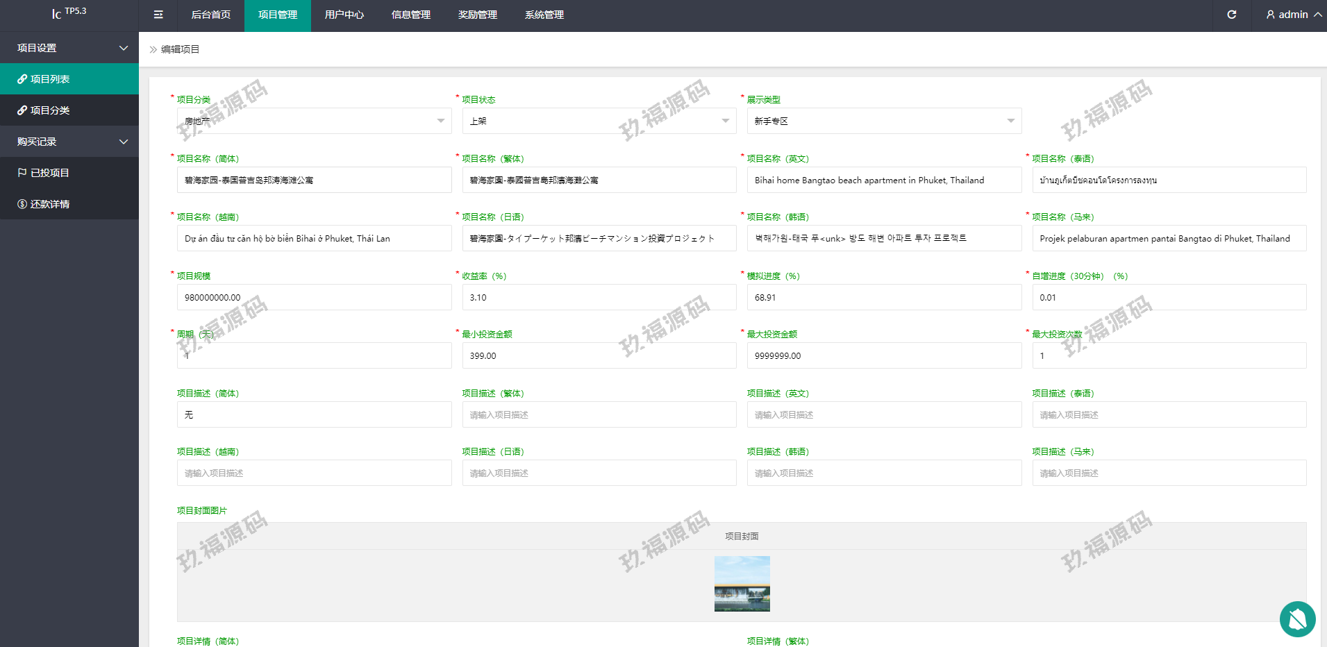 出海版多语言国际理财返利资金 八国语言基金玖福项目投资金融源码
