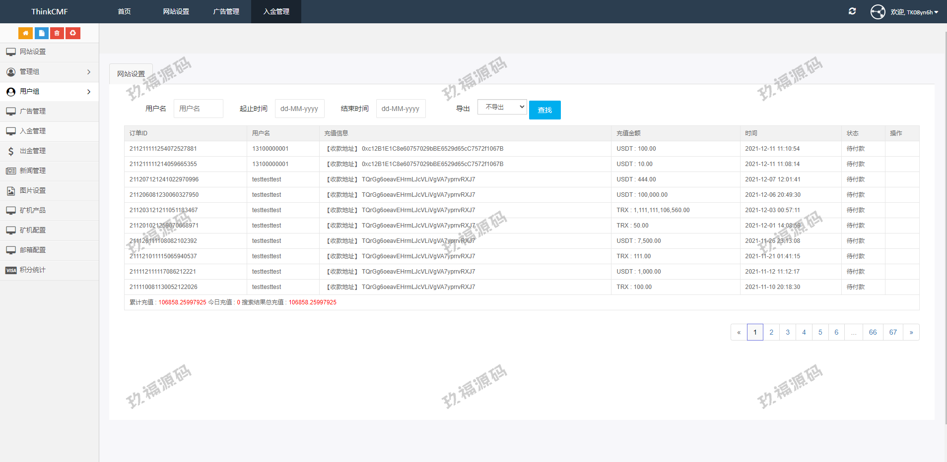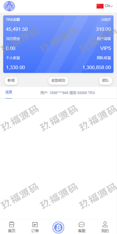 款ThinkCMF开发的TRX矿机源码,完美运营级别,4国语言、usdt充值
