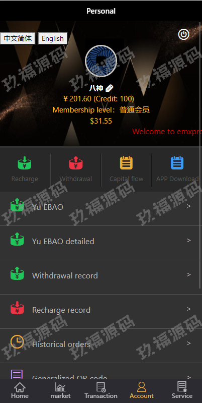 一款比较经典的微交易系统,二开了双语言,支持虚拟币充值