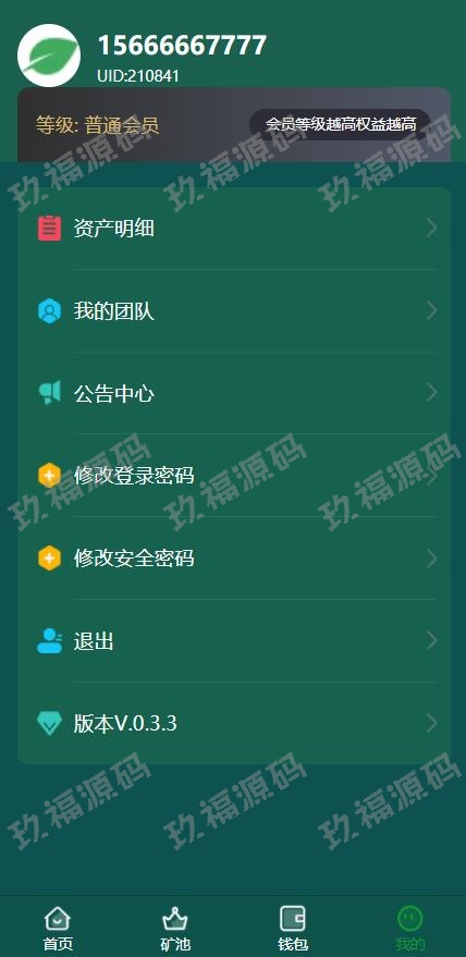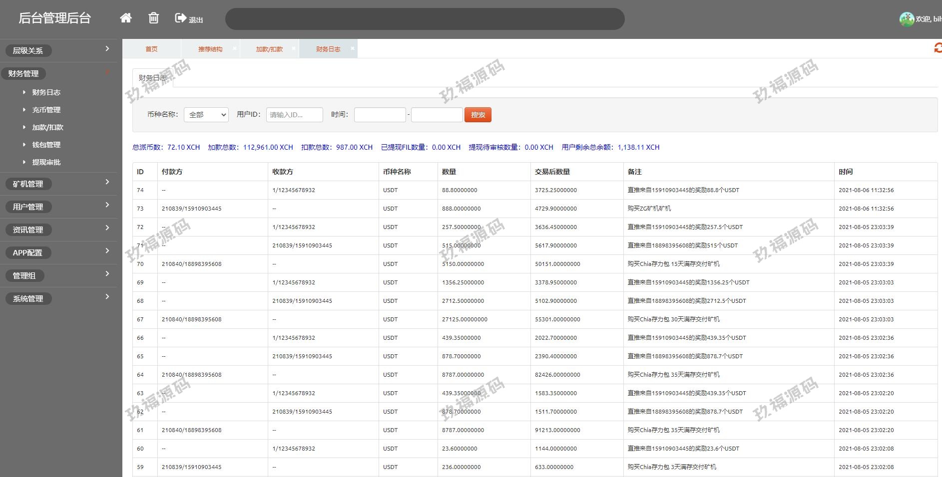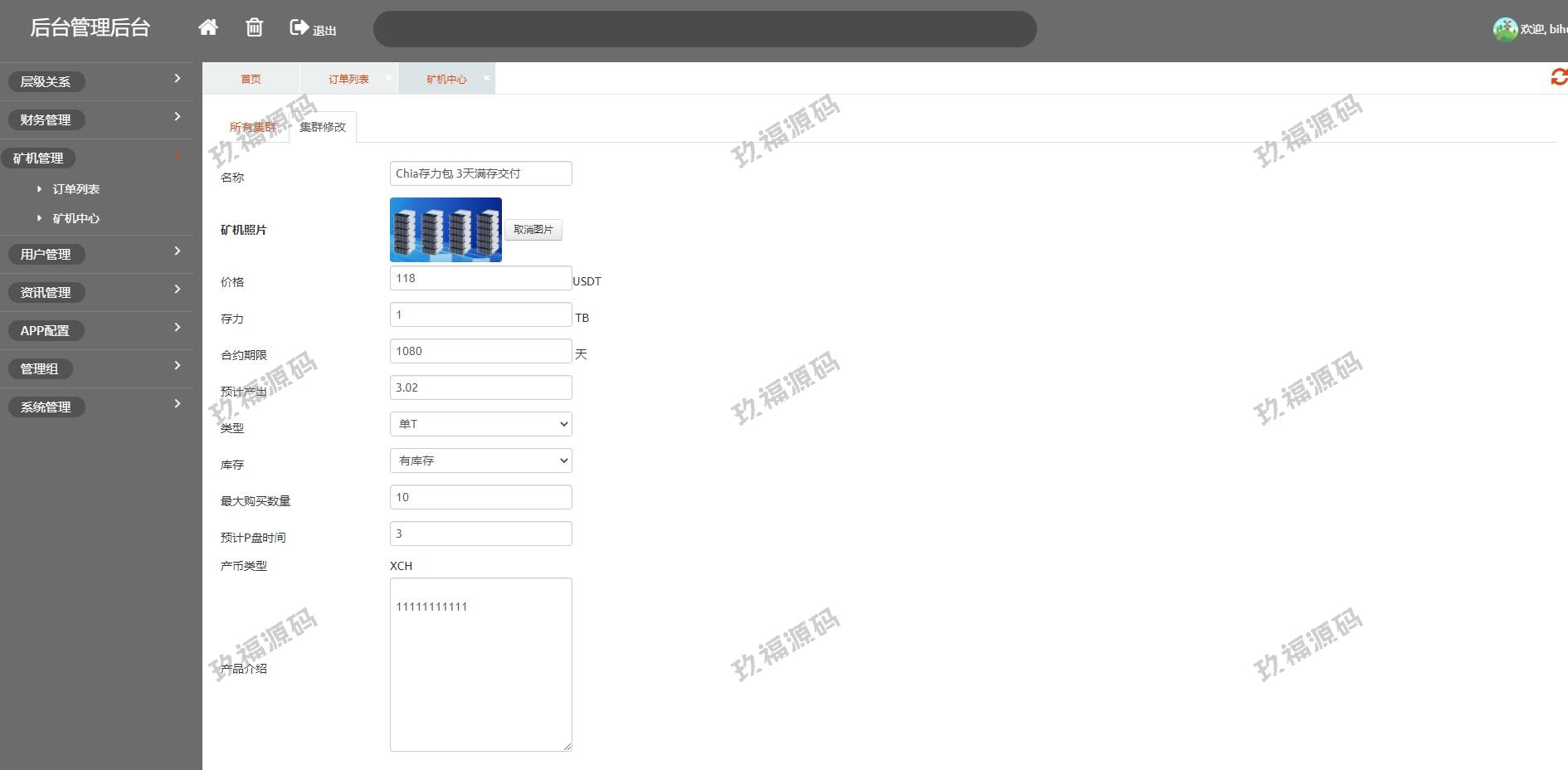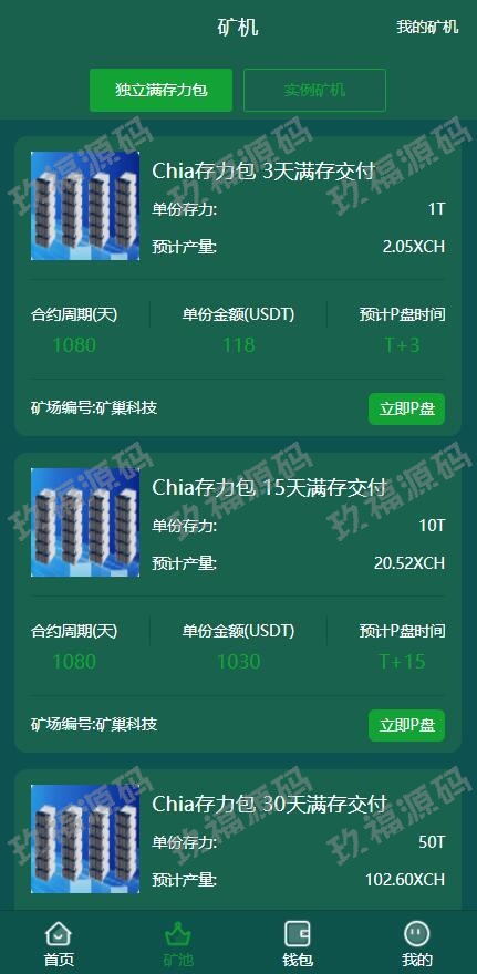 1、可以使用usdt购买矿机,可上线多币种,上交易所以后,USDT充值,官网行情数据接口 平台转账,coinbase接口所有币种自动换算人民币 2、直推奖励,根据矿机购买币种不同,而不同 3、无线性释放,矿机所产收益,自动扣除技术服务费,剩余一次性到账结算,每天凌晨2点结算前一天的矿机收益 4、矿机有封装期,封装期不产币,封装多少,按封装多少自动产币封装期结束以后自动开始结算收益 5、根据区块浏览器的实时产币信息,后台填写每T的产币量,用于结算 6、有直推奖、团队奖、产能奖、同级奖,间推奖,可以定制 7、后台可管理会员信息、矿机信息、奖励信息