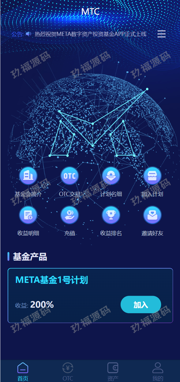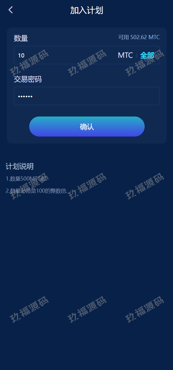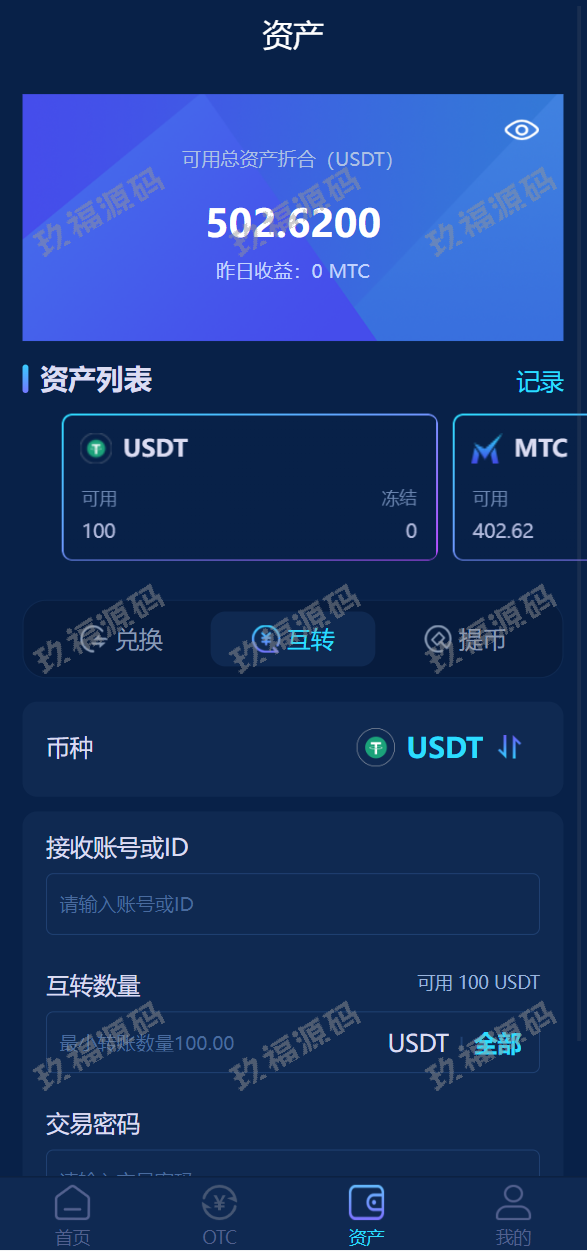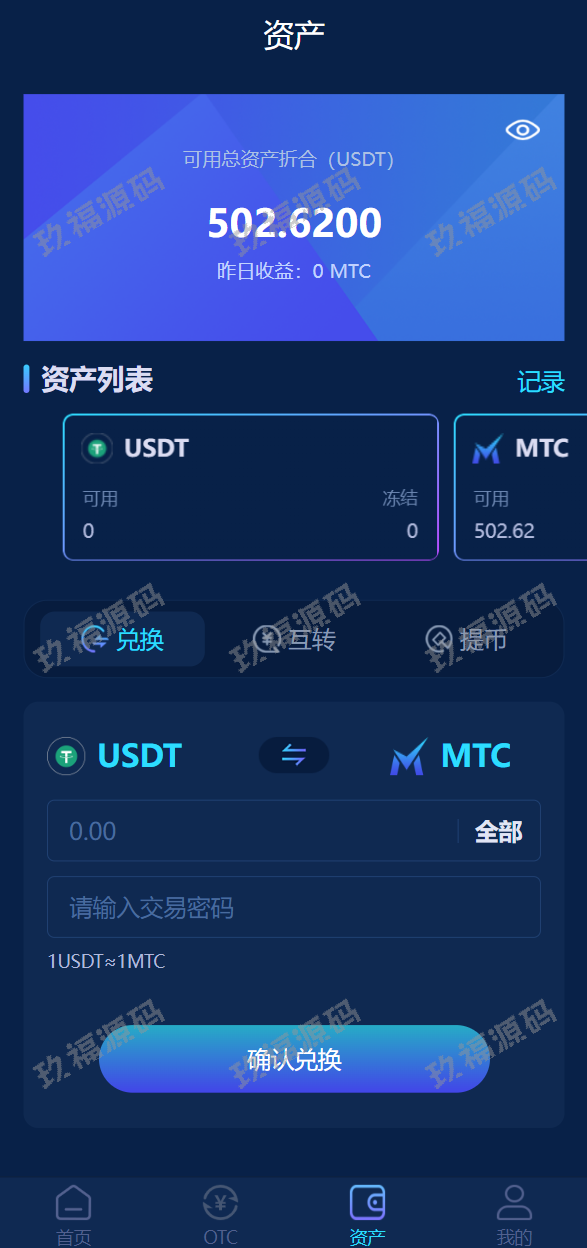 前台充值usdt兑换平台币,进行投资分红,并可以挂单交易,具体看图