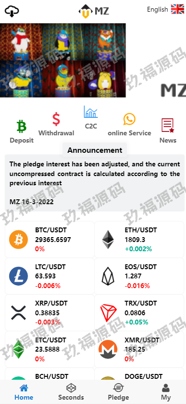 全新UI多语言微交易微盘系统/秒合约/质押理财/至尊二开交易所