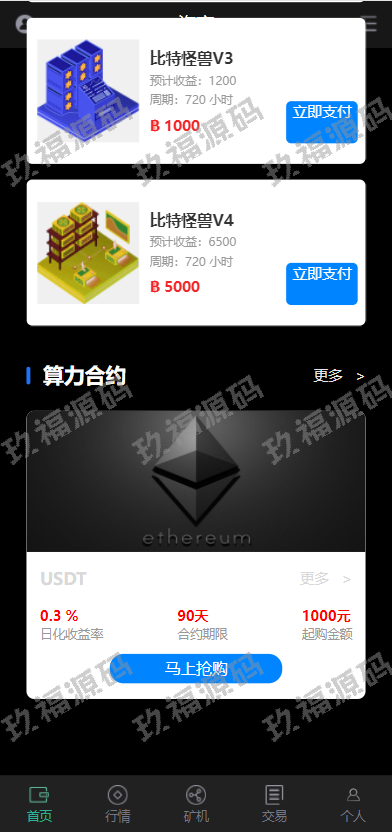 全新二开四语言区块链矿机系统/合约矿机交易/USDT数字钱包
