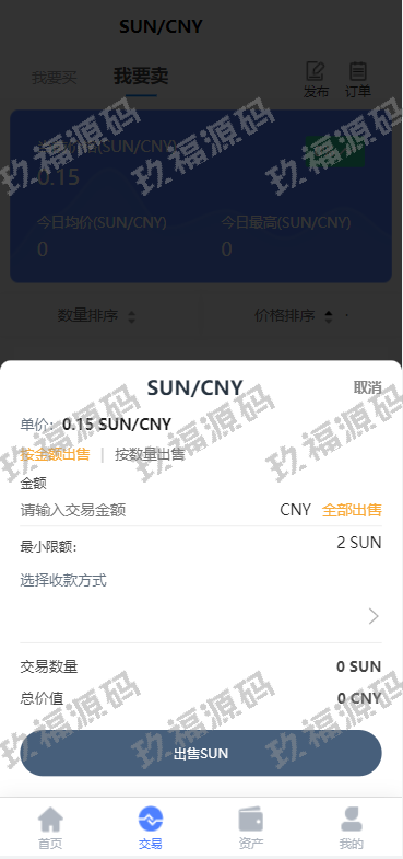 4.卖方出30%的手续费(参数可调),买方不用手续费 ,卖方手续费直接扣除总钱包的币