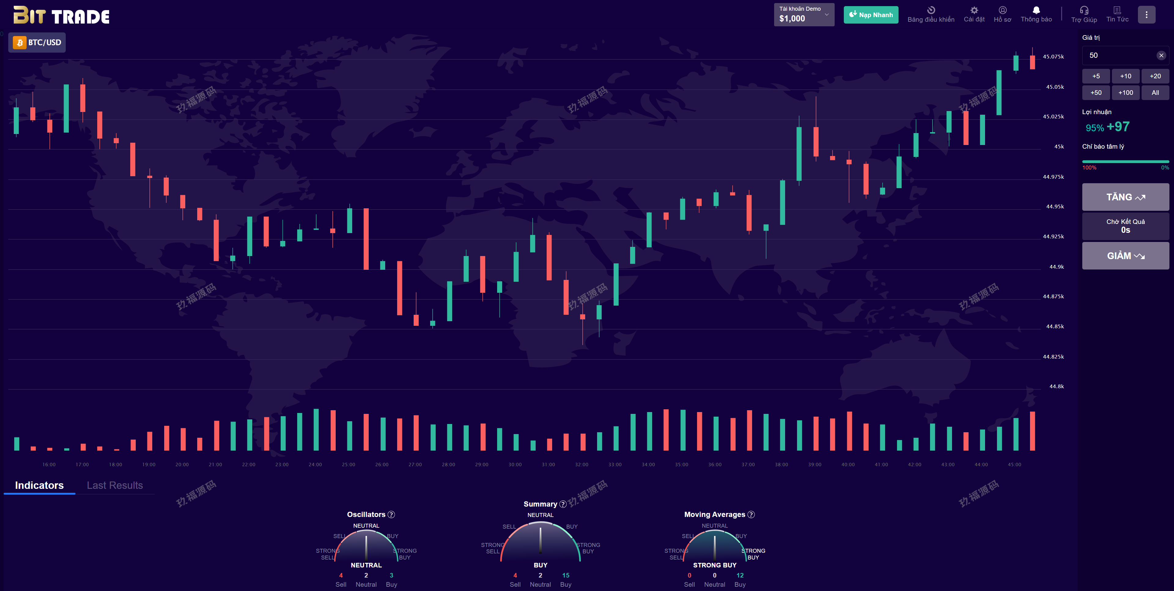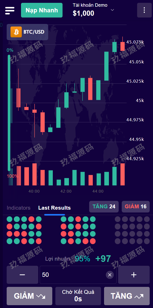 系统前台后台均为越南语版,源码大概就是以btc为盘买涨买跌的