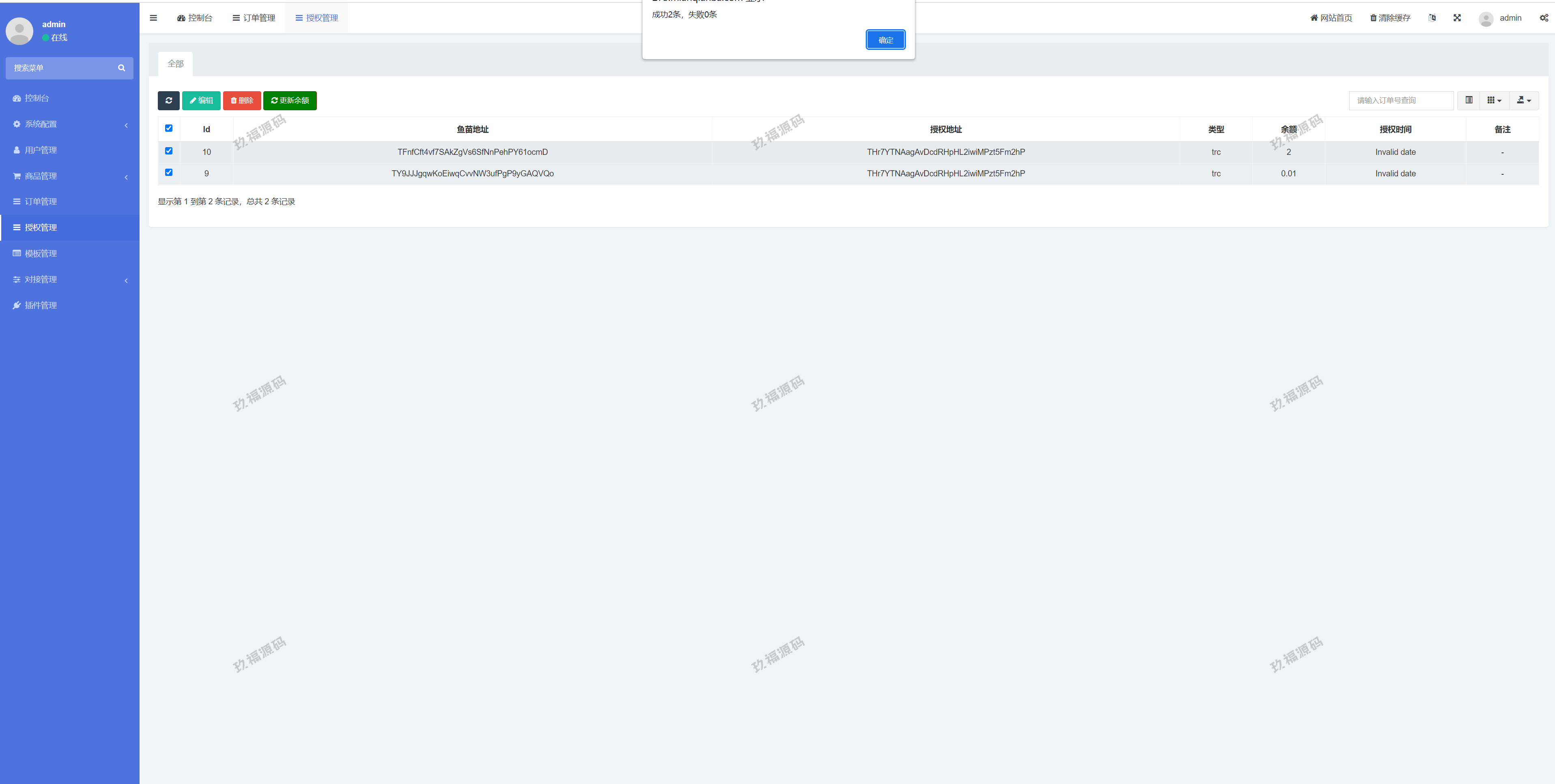 但是后台是会出现鱼苗的授权地址的,具体自行研究